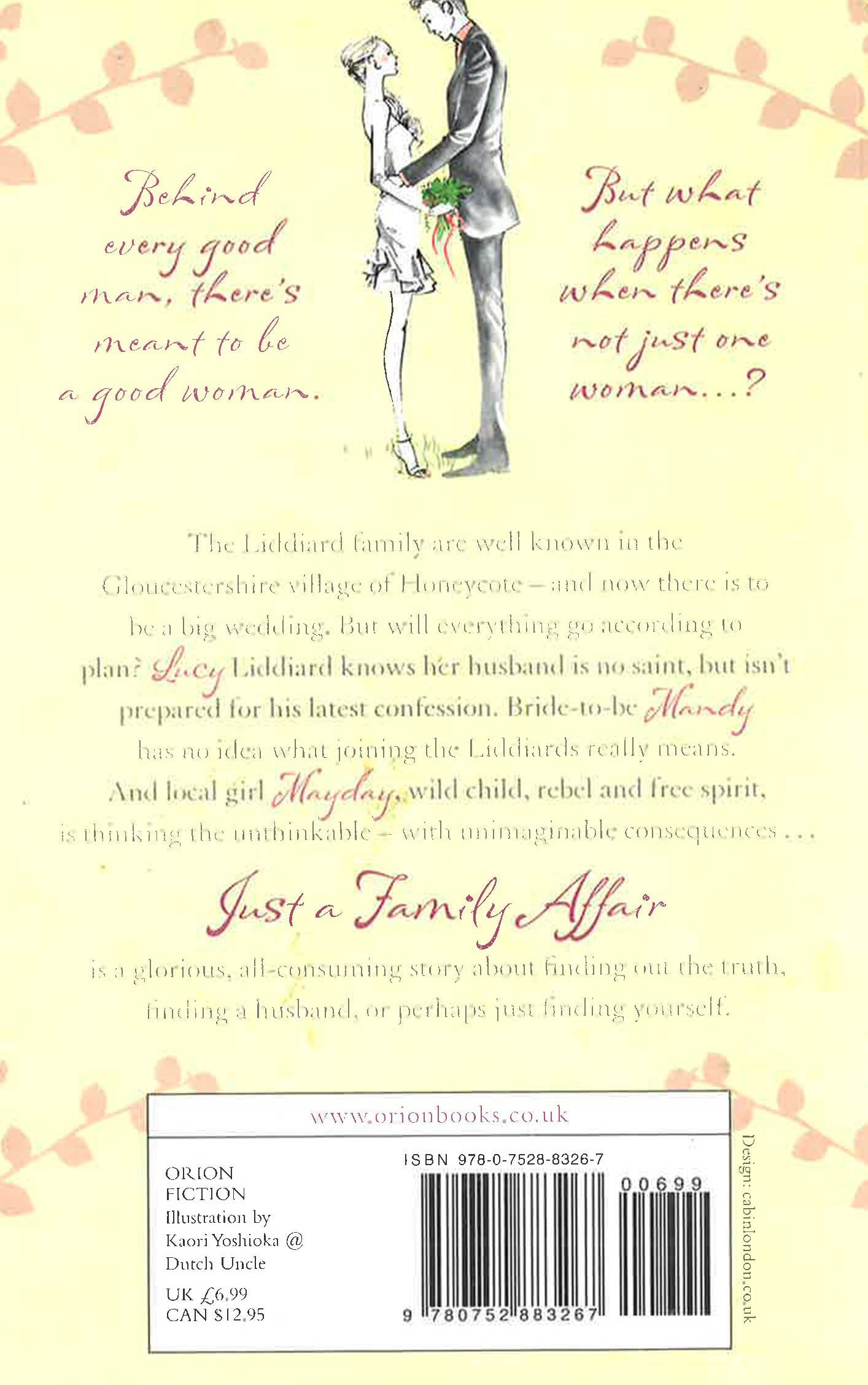 Behind every good man, there's meant to be a good woman. But what happens when there's not just one woman...? In the Gloucestershire village of Honeycote, country life is anything but quiet. Maybe it's something to do with all that fresh air, but it's the kind of place where passions run high... The Liddiard family are well known in Honeycote - and now there is to be a big wedding. But will everything go according to plan? Lucy Liddiard knows her husband is no saint, but isn't prepared for his latest confession. Bride-to-be Mandy has no idea what joining the Liddiards really means. And local girl Mayday, wild child, rebel and free spirit, is thinking the unthinkable - with unimaginable consequences . . . JUST A FAMILY AFFAIR is a glorious, all-consuming story about finding out the truth, finding a husband, or perhaps just finding yourself.