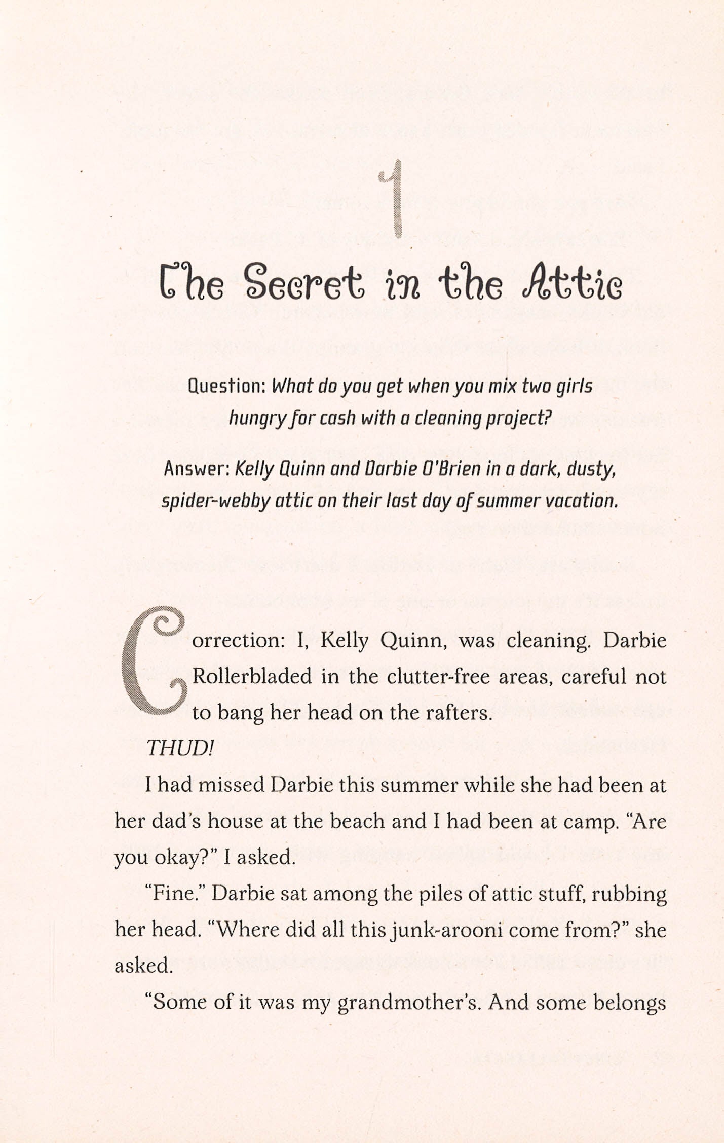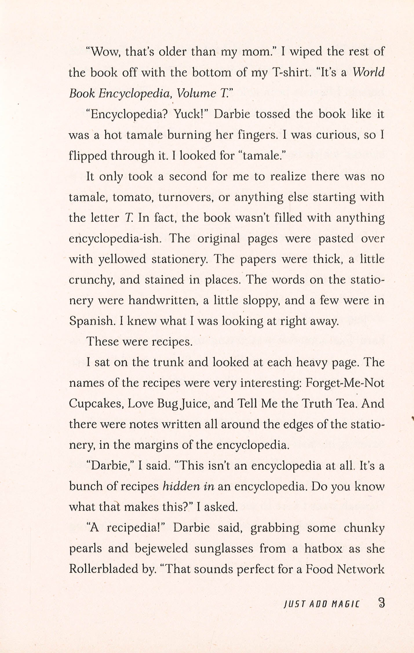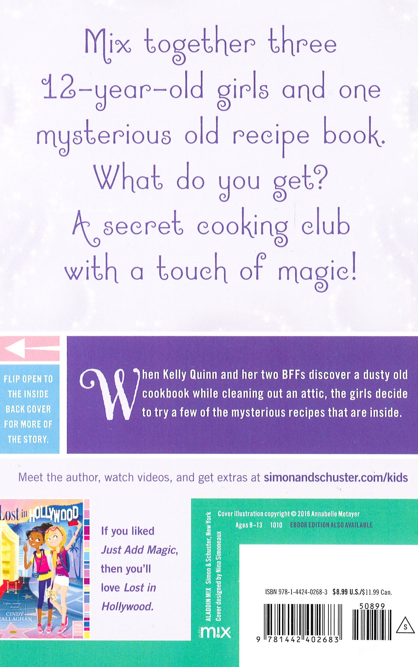 Take three friends. Add an old cookbook. Combine with cute boys and a pinch of magic...and see what kind of chaos ensues! When Kelly Quinn and her two BFFs discover a dusty old cookbook while cleaning out the attic, the girls decide to try a few of the mysterious and supposedly magical recipes that are inside. To their surprise, the Keep 'Em Quiet Cobbler actually silences Kelly's pesky little brother and the Hexberry Tart puts a curse on mean girl Charlotte. Is it possible that the recipes really are magic? Who wrote them and where did they come from? And most importantly of all, when boys get involved, what kind of trouble are the girls stirring up for themselves?