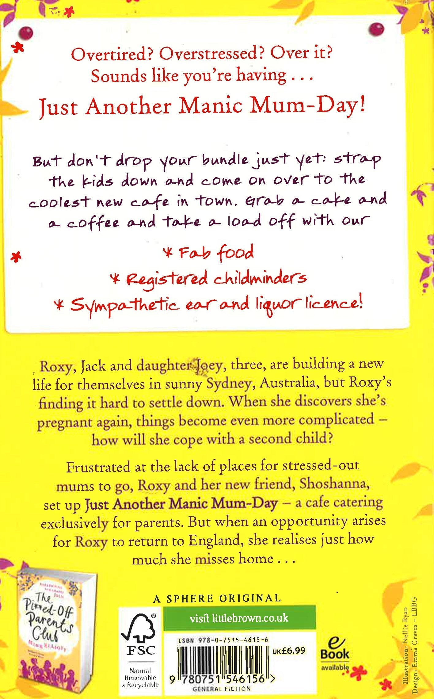 * From the author of the hilariously refreshing novel, THE PISSED-OFF PARENTS CLUB Roxy, Jack and daughter Joey, three, are building a new life for themselves in sunny Sydney, Australia, but Roxy's finding it hard to settle down. When she discovers she's pregnant again, things become even more complicated - how will she cope with a second child?Frustrated at the lack of places for stressed-out mums to go, Roxy and her new friend, Shoshanna, set up Just Another Manic Mum-Day - a cafe catering exclusively for parents. But when an opportunity arises for Roxy to return to England, she realises just how much she's missed home . . .