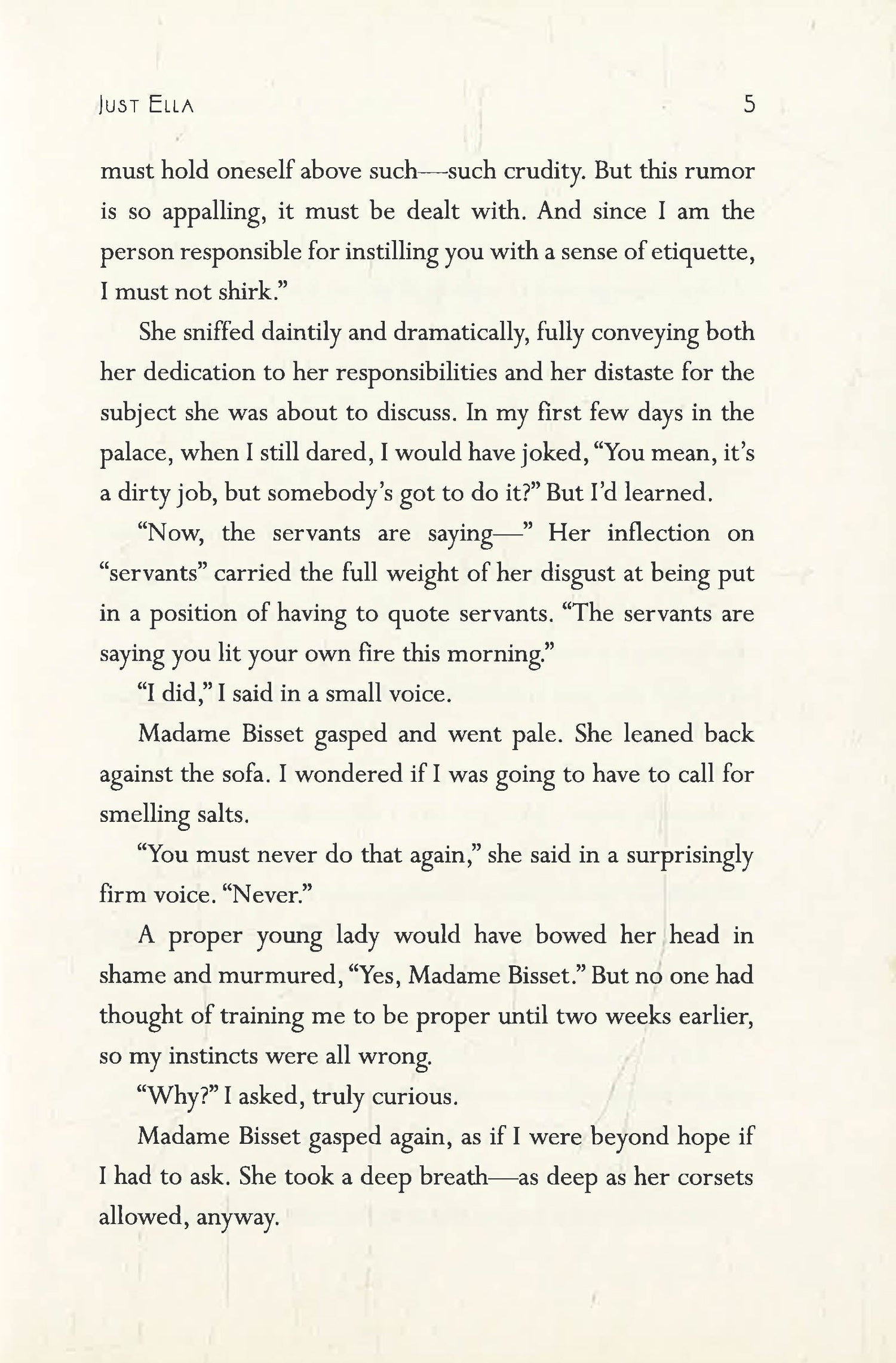 Even as her life turns to misery, stories persist that Ella’s fairy godmother sent her to the ball: How else could the poor girl wear a beautiful gown, arrive in a coach, and dance in those glass slippers? But Ella got herself into the castle on her own—and that’s the only way she’s going to get out.