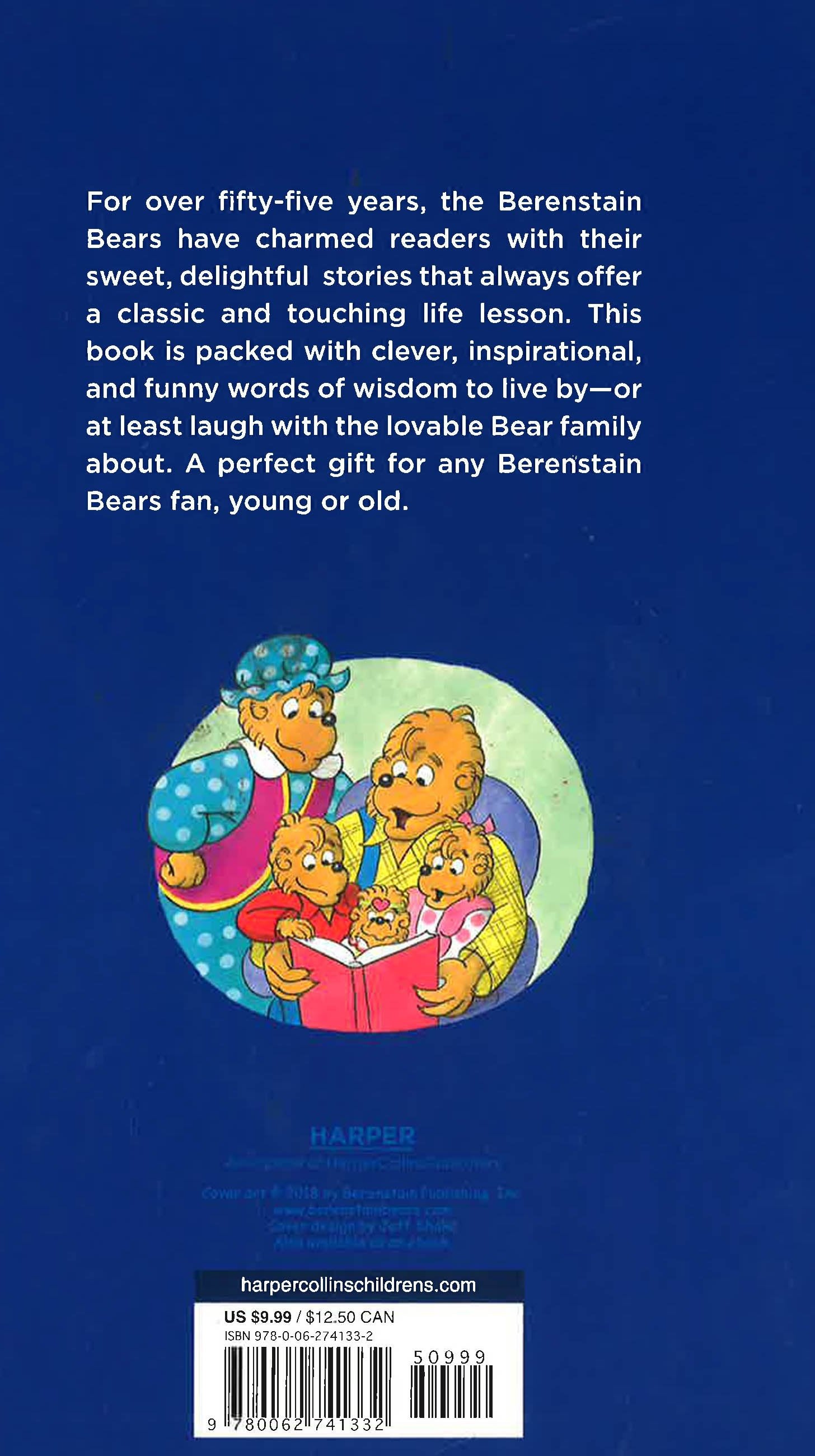 Since 1962, the Berenstain Bears family has charmed generations of readers with their wholesome stories and heartfelt lessons. Now the Bear family has some wisdom to share with kids of all ages! Each spread in this appealing 96-page paper-over-board book features a classic and often humorous scene from the beloved original storybooks. Fans young and old can travel back to Bear Country with Papa, Mama, Brother, Sister, and Honey and laugh and nod along at their words of wisdom, inspiration, and encouragement.This book is sure to be the perfect gift for someone who just graduated or reached a life milestone - or for anyone simply looking for a little piece of sensible Bear family enlightenment.