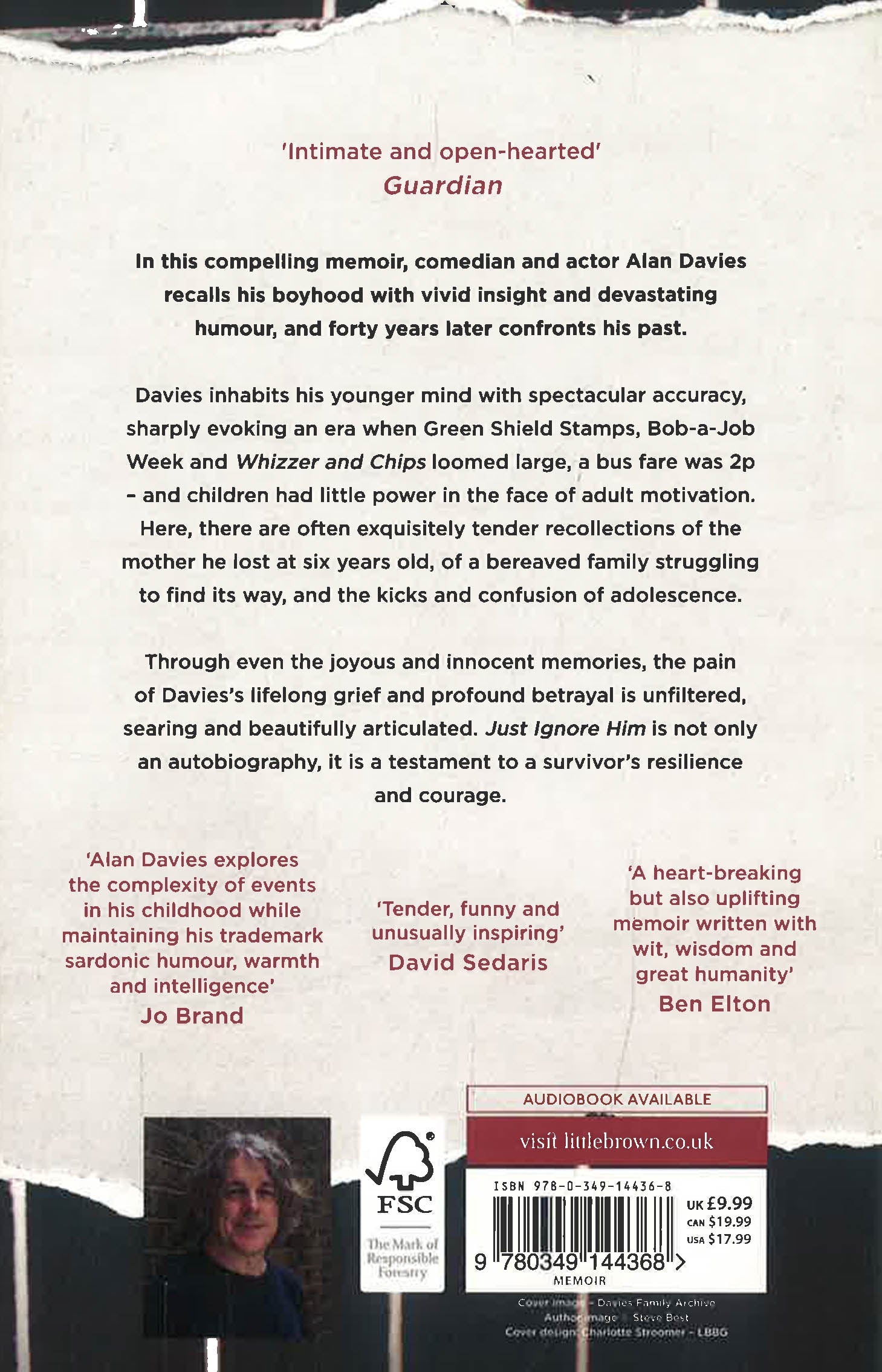 In this compelling memoir, comedian and actor Alan Davies recalls his boyhood with vivid insight and devastating humour. Shifting between his 1970s upbringing and his life today, Davies moves poignantly from innocence to experience to the clarity of hindsight, always with a keen sense of the absurd. From sibling dynamics, to his voiceless, misunderstood progression through school, sexuality and humiliating 'accidents', Davies inhabits his younger mind with spectacular accuracy, sharply evoking an era when Green Shield Stamps, Bob-a-Job week and Whizzer & Chips loomed large, a bus fare was 2p - and children had little power in the face of adult motivation. Here, there are often exquisitely tender recollections of the mother he lost at six years old, of a bereaved family struggling to find its way, and the kicks and confusion of adolescence.