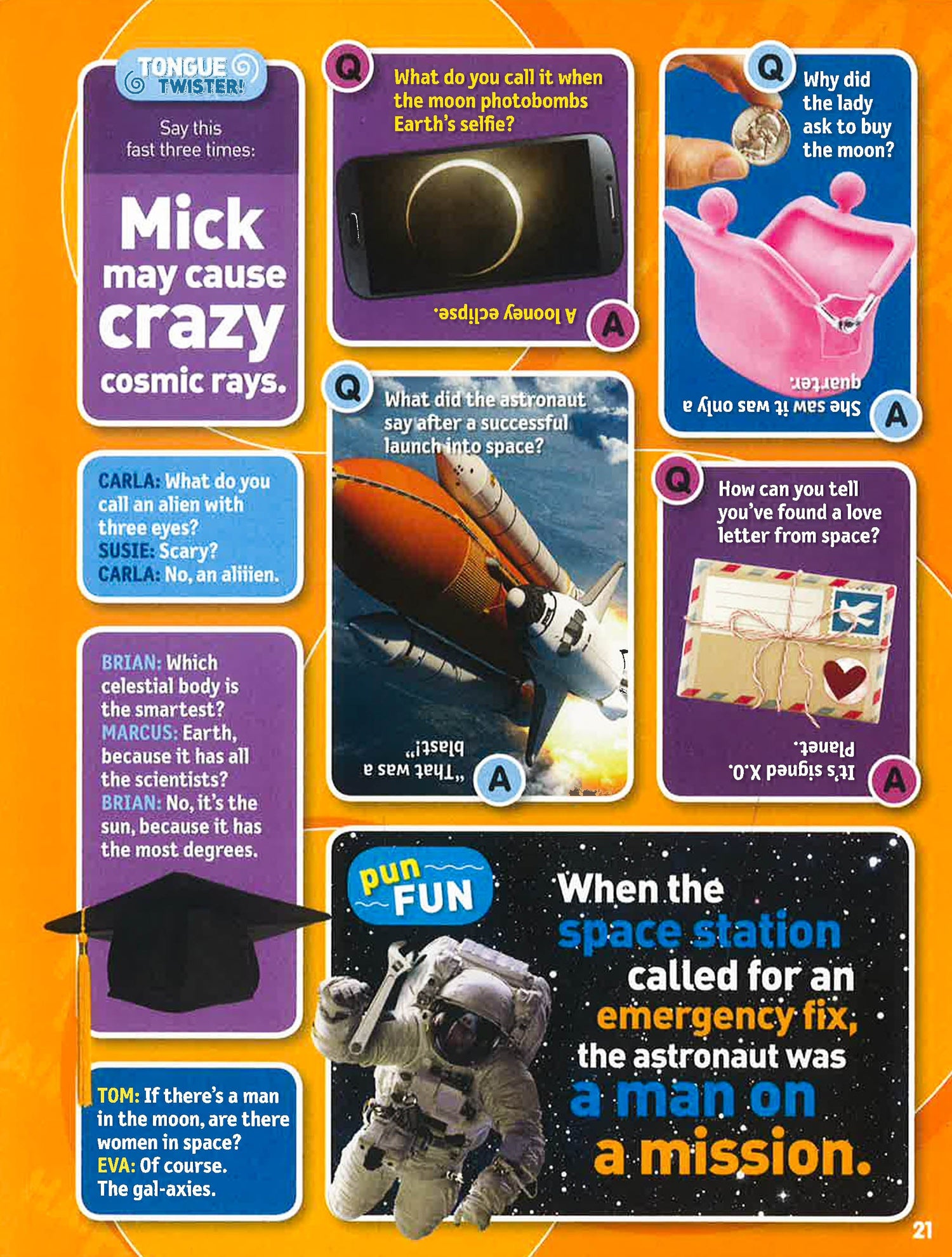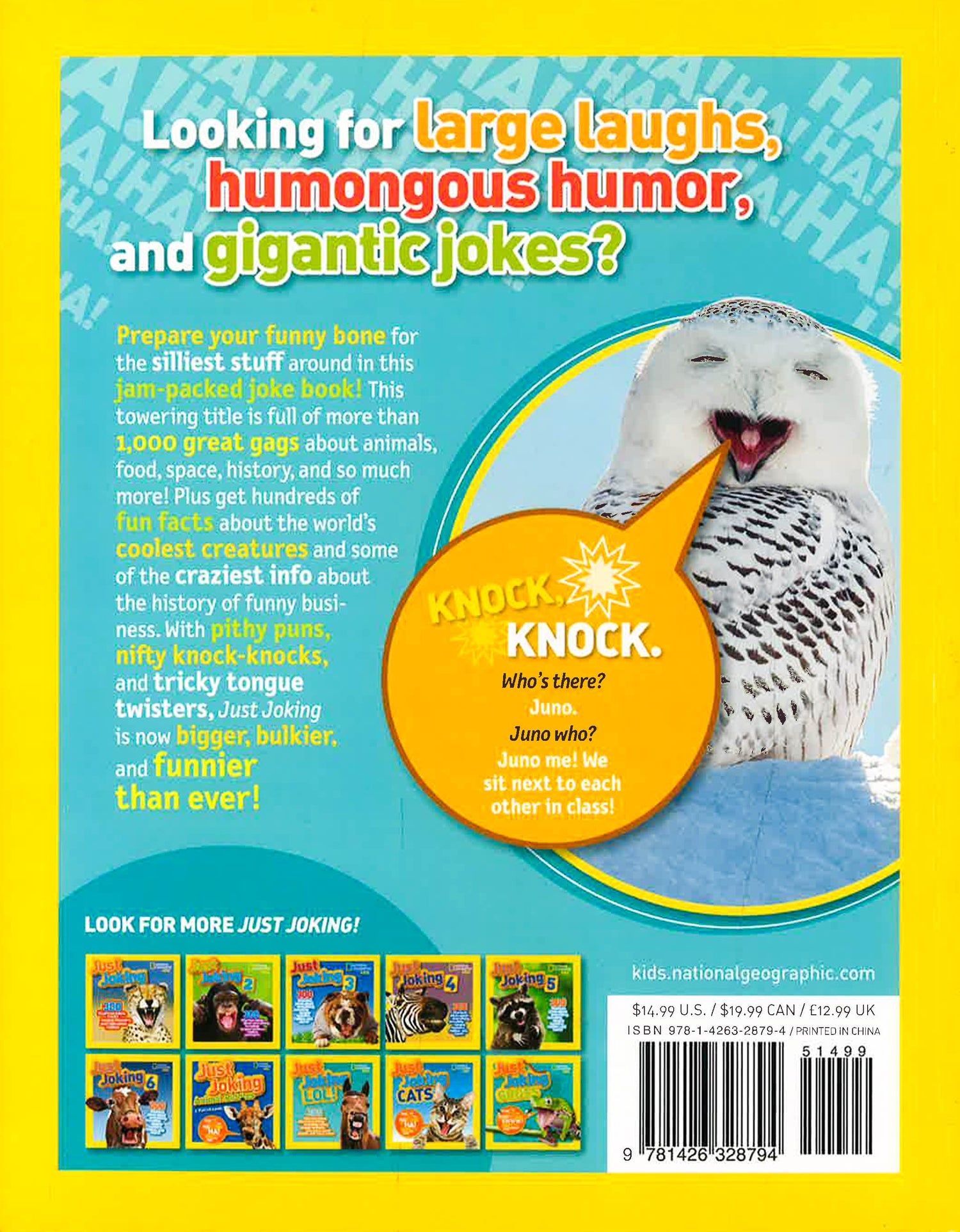 Can't get enough hilarious jokes from National Geographic Kids? Never fear! With this brand-new bigger, better Just Joking book, you'll get loads of laughs to keep you ROFL and to share with friends and family. It's jam-packed with 1,000 jokes, including knock-knocks, puns, riddles, and tongue twisters, plus more than 1,000 photos of cool animals, silly situations, and more! Get hundreds of fun facts about all the coolest creatures and some of the craziest info about the history of funny business. It's the right formula for laughing, learning, and maybe even launching your stand-up comedy career!