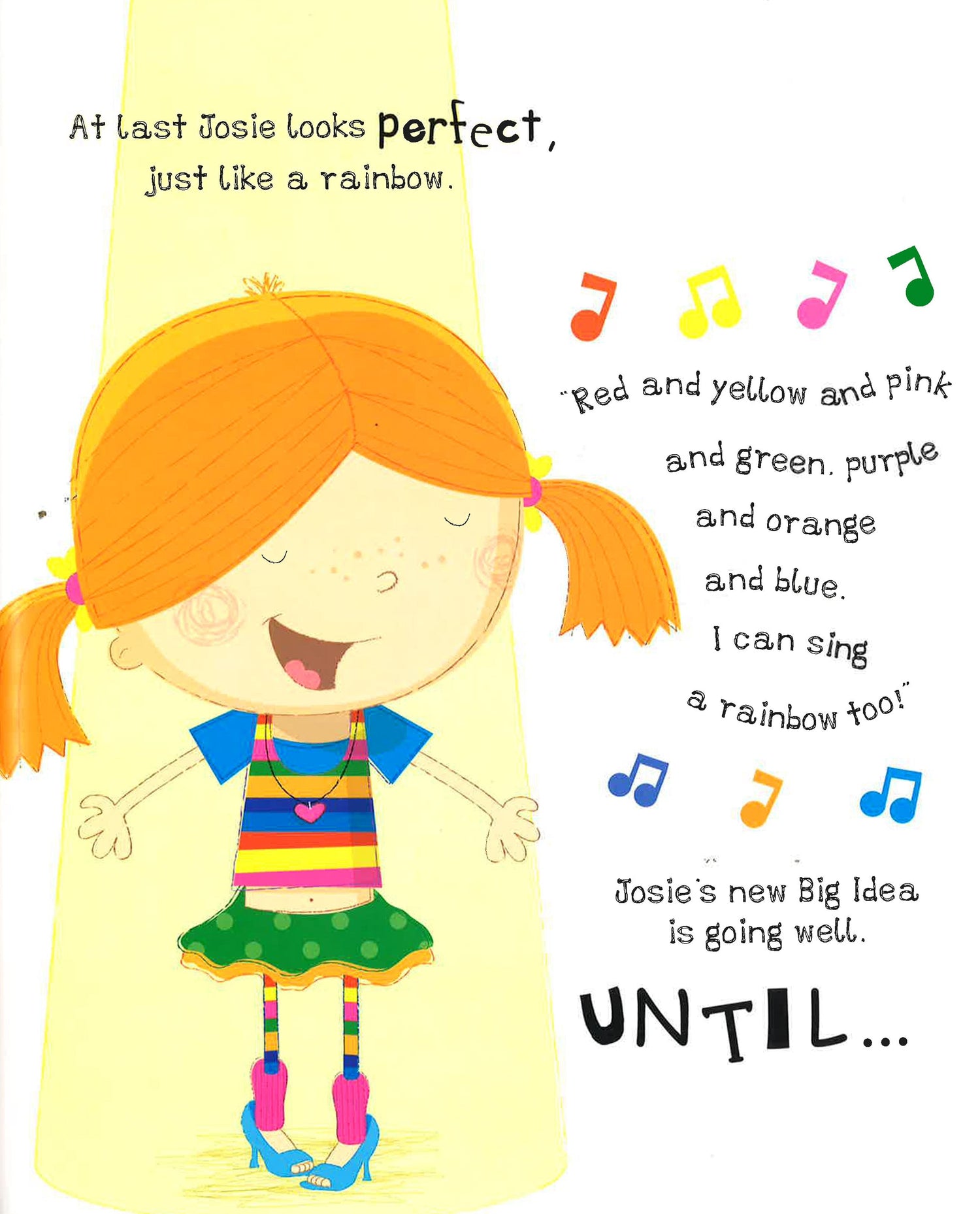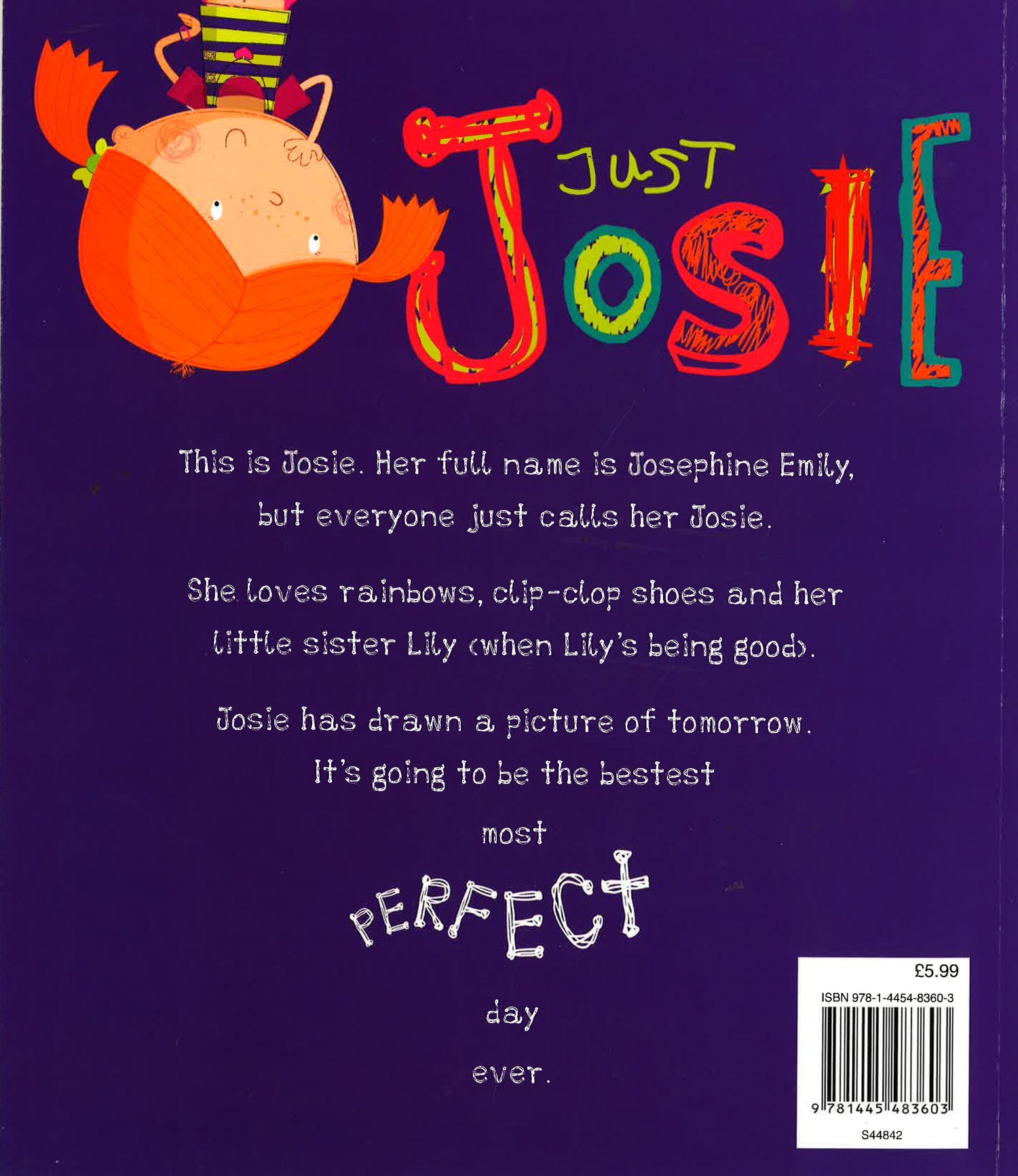 This is Josie. Her full name is Josephine Emily, but everyone just calls her Josie. She loves rainbows, the clip-clop sound of her mom's shoes, and her little sister Lily (when Lily's being good). Josie has drawn a picture of tomorrow. It's going to be the bestest most perfect day ever!