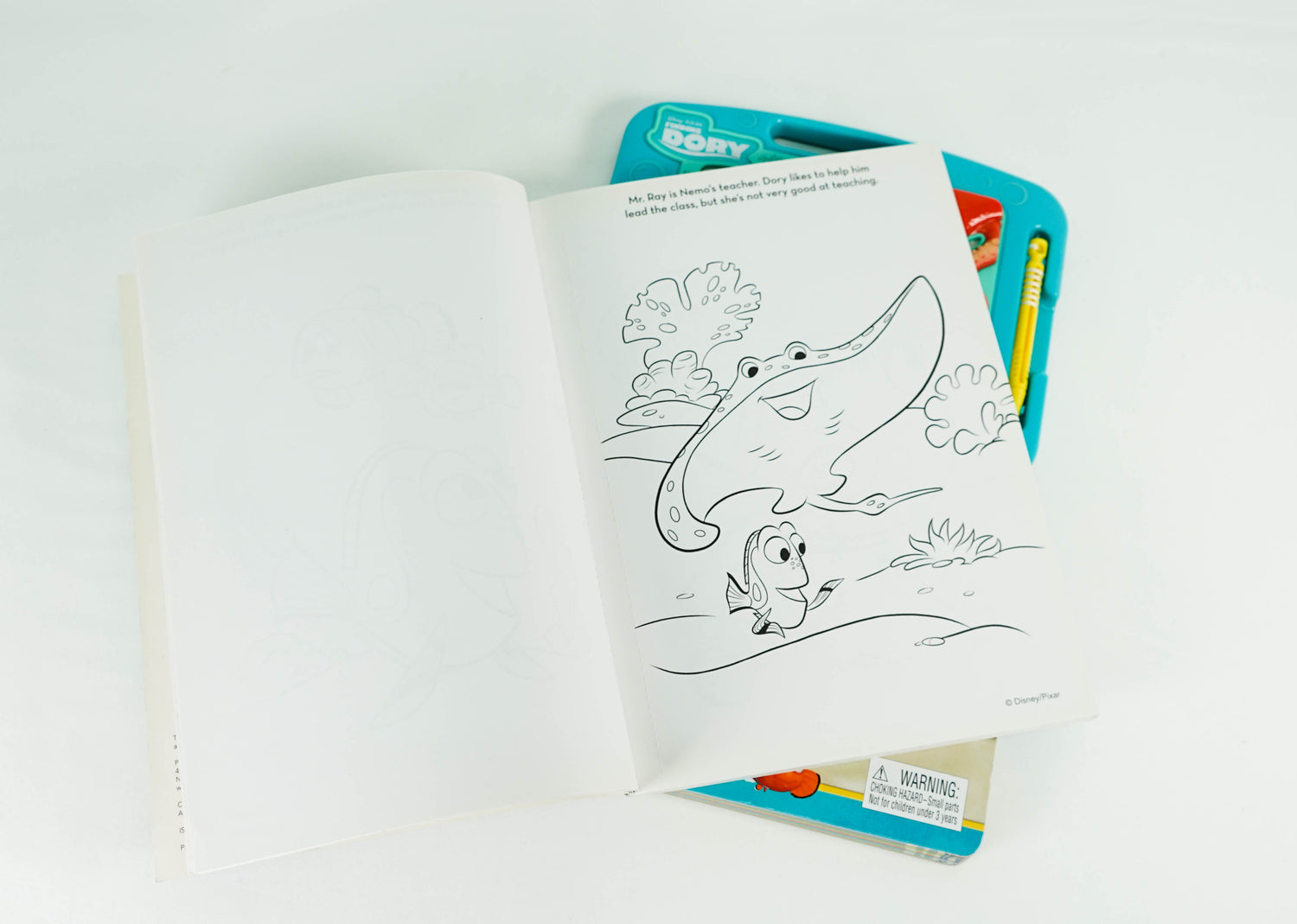 Dory is splashing away in the ocean and she wants you to join her! It seems she can’t remember what colour everything is! Help her out and get this bundle for some creative drawing experience for children ages 3 years and (under)water colouring fun!