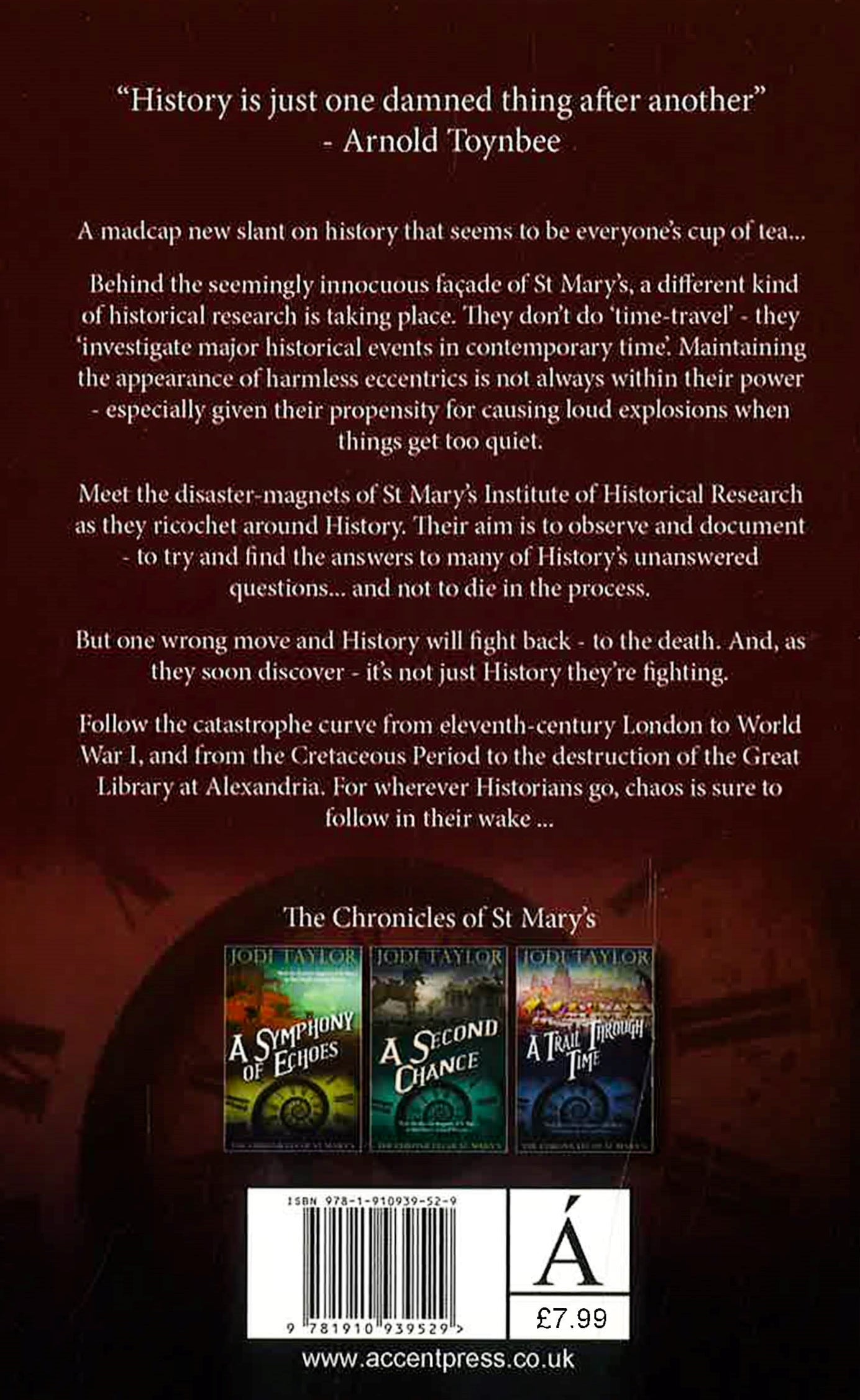 Time Travel meets History in this explosive bestselling adventure series. `So tell me, Dr Maxwell, if the whole of History lay before you ... where would you go? What would you like to witness?' When Madeleine Maxwell is recruited by the St Mary's Institute of Historical Research, she discovers the historians there don't just study the past - they revisit it. But one wrong move and History will fight back - to the death. And she soon discovers it's not just History she's fighting... Follow the tea-soaked disaster magnets of St Mary's as they rattle around History. Because wherever the historians go, chaos is sure to follow.