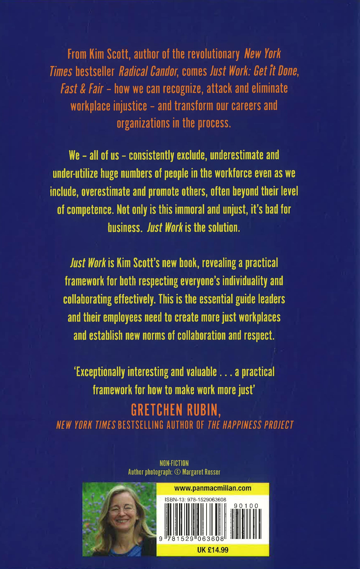 From Kim Scott, author of the revolutionary New York Times bestseller Radical Candor, comes Just Work – how we can recognize, attack and eliminate workplace injustice – and transform our careers and organizations in the process.