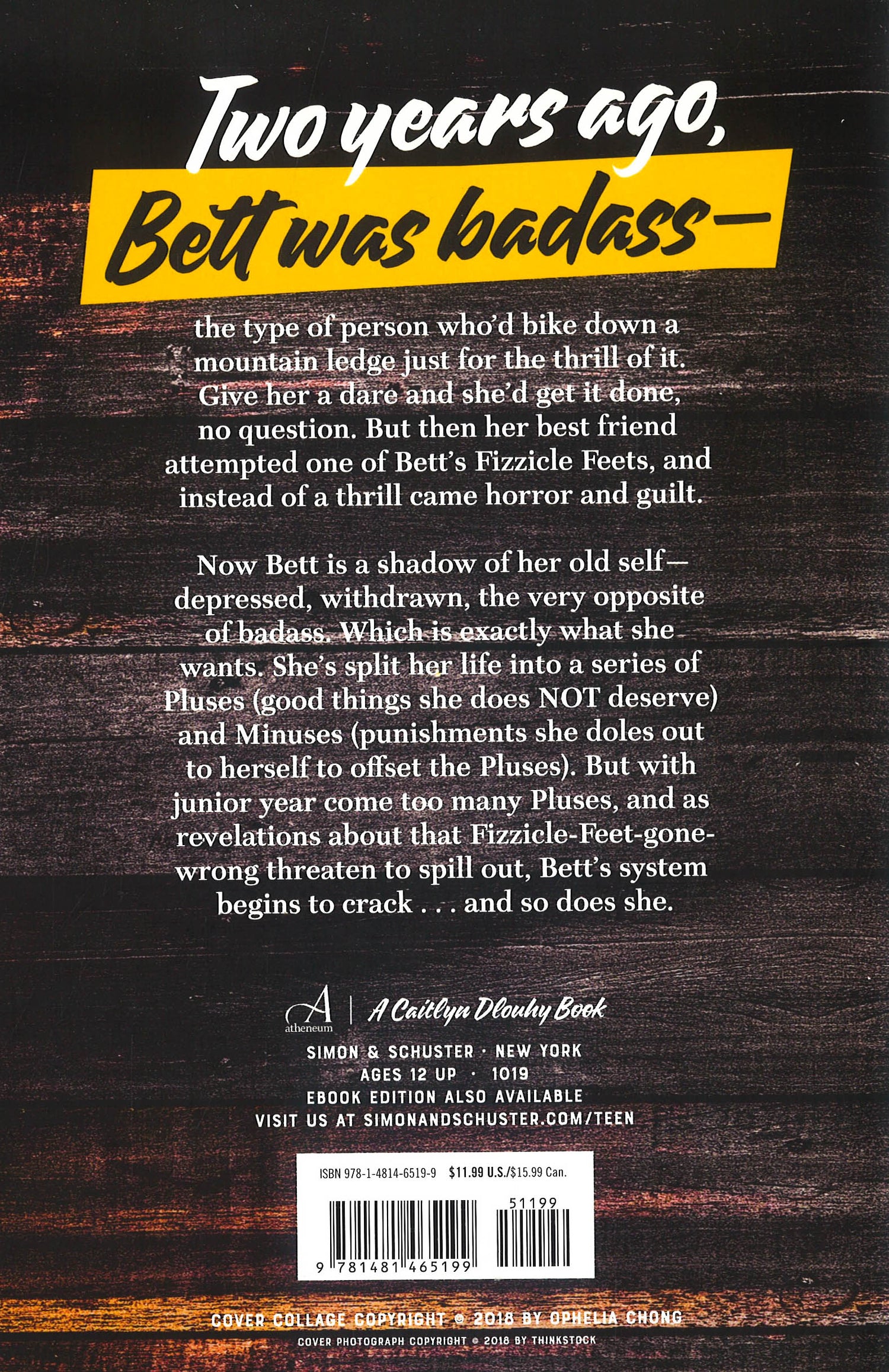 Now Bett divides her life into Pluses and Minuses. Pluses are anything that make her feel good, things she doesn’t—nope, no way, no how—deserve. Minuses are punishments she doles out to herself—literally, in the form of binge eating—when a Plus can’t be avoided. Now, Bett is extremely overweight, depressed, and the opposite of badass. Which makes her happy. But is that a Plus? Bett’s system is beginning to crack, and revelations of that prank-gone-wrong are threatening to come out.