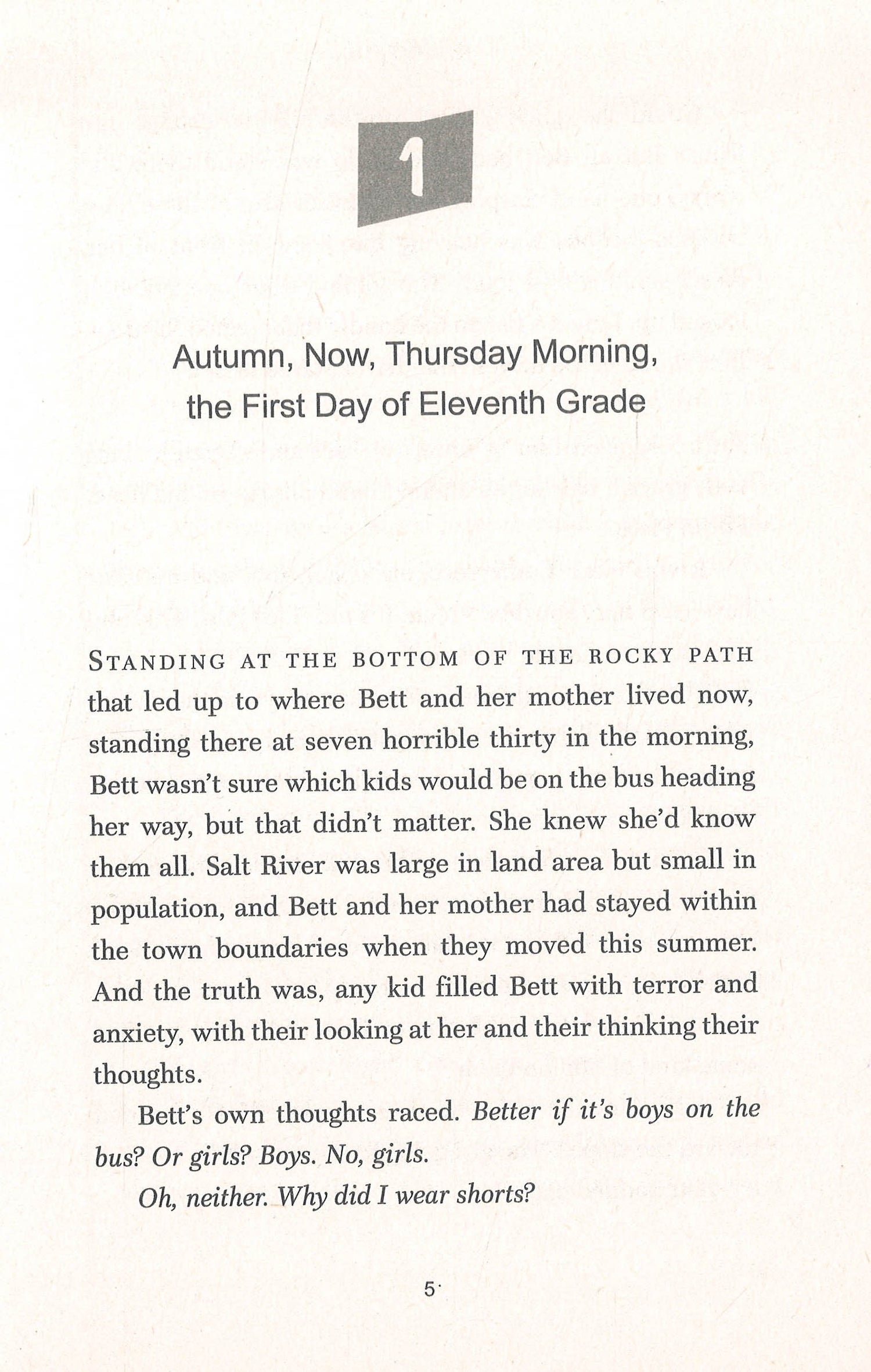 Wracked with guilt due to a horrific accident that maimed her best friend two years earlier, sixteen-year-old Bett’s life is a series of pluses and minuses. But when the pluses start to outweigh the minuses, Bett is forced to confront her self-harming behavior in this powerful novel about self-forgiveness.