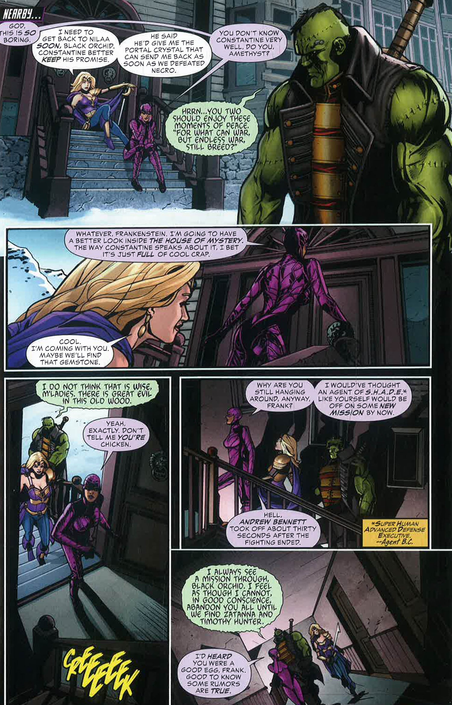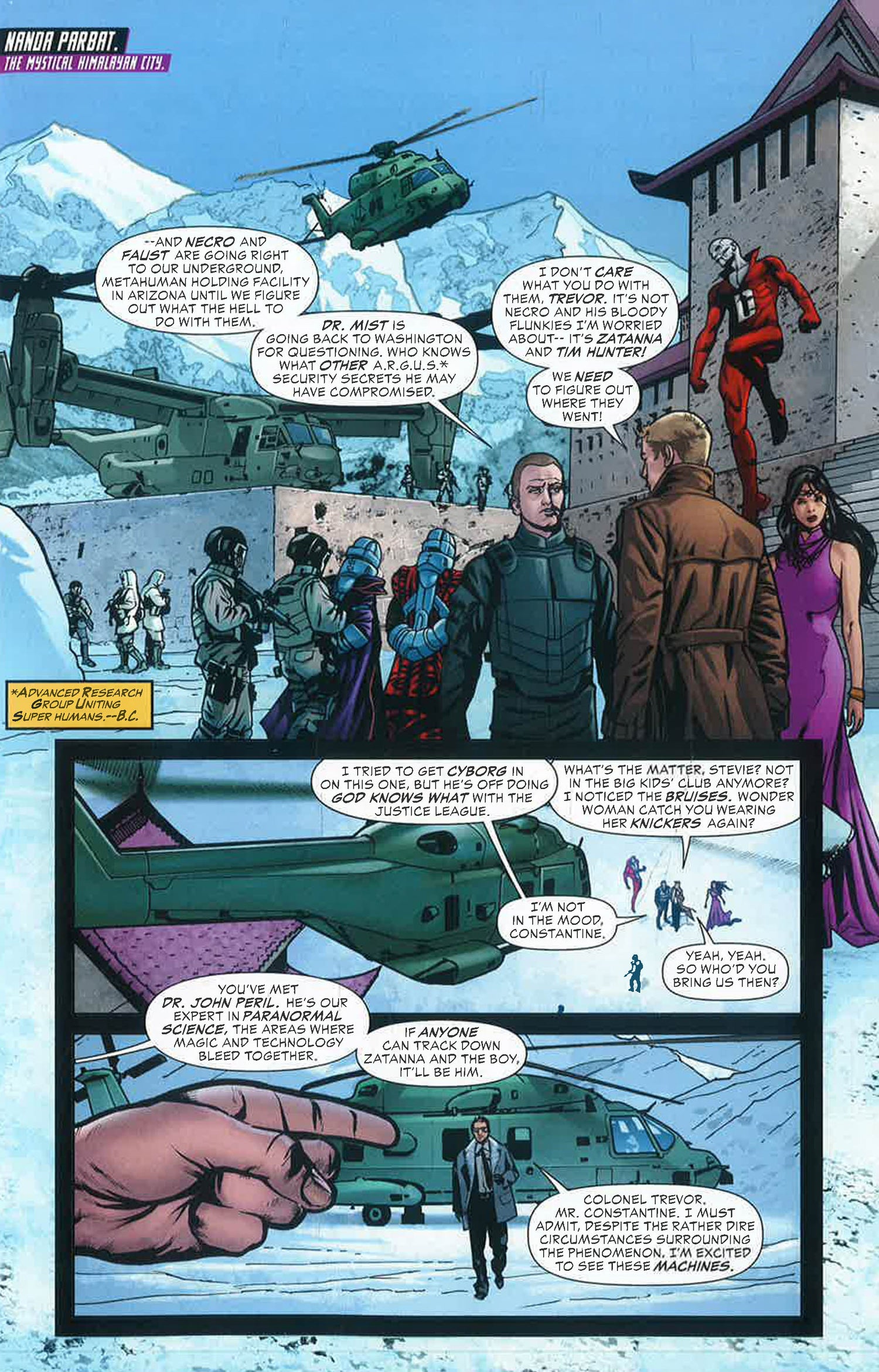 Unsure of what transpired when Tim and Zatanna disappeared, the remaining members of JLD, with the help of Tim Hunter's father, manage to transport themselves to the "Wild World" and soon find that the rules of magic here are very different and very deadly.