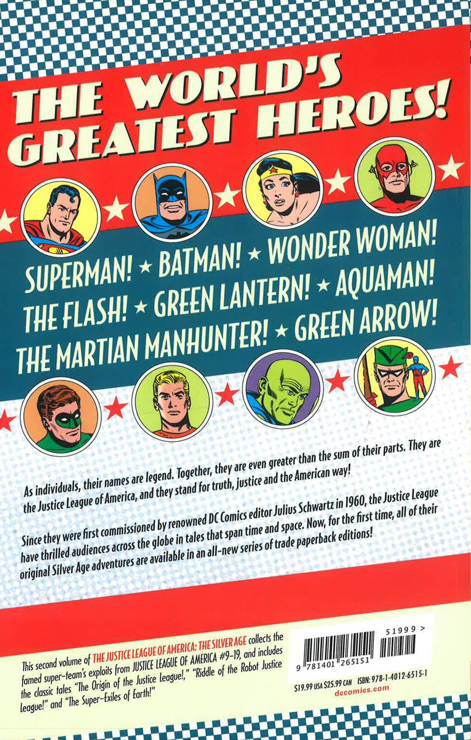 This second volume of THE JUSTICE LEAGUE OF AMERICA: THE SILVER AGE collects the fame super-team’s exploits from JUSTICE LEAGUE OF AMERICA #9-19, and includes the classic tales “The Origin of the Justice League!,” “Riddle of the Robot Justice League!” and “The Super-Exiles of Earth!”