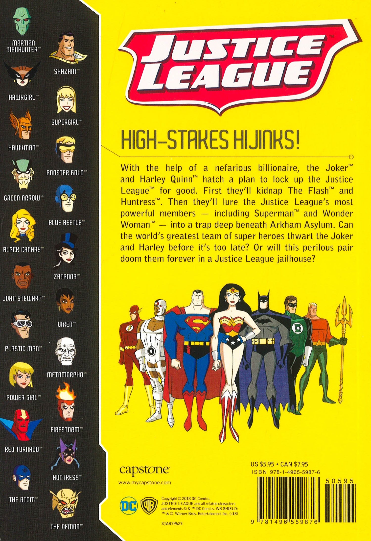 With the help of a nefarious billionaire, the Joker and Harley Quinn hatch a plan to lock up the Justice League for good. First they'll kidnap The Flash and Huntress. Then they'll lure the Justice League's most powerful members -- including Batman, Superman, and Wonder Woman -- into a trap beneath Arkham Asylum. Can the world's greatest team of super heroes thwart the Joker and Harley before it's too late? Or will this perilous pair doom them forever in a Justice League jailhouse?