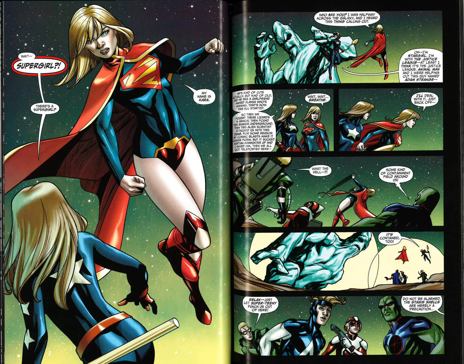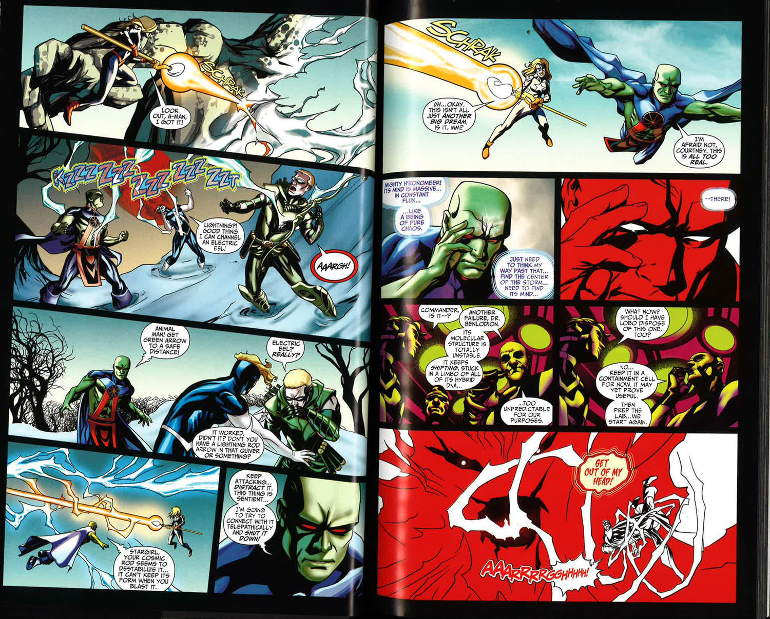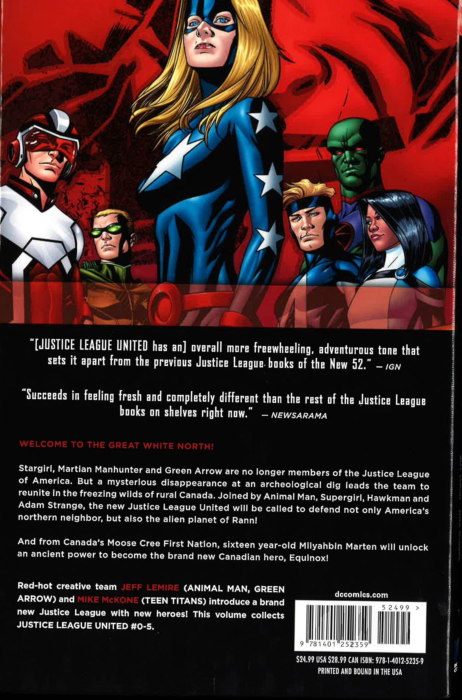Welcome to the Great White North! Stargirl, Martian Manhunter and Green Arrow are no longer members of the Justice League of America. But a mysterious disappearance at an archaeological dig leads the team to reunite in the freezing wilds of rural Canada. Joined by Animal Man, Supergirl, Hawkman and Adam Strange, the new Justice League United will be called to defend not only America's northern neighbor, but also the alien planet of Rann! And from Canada's Moose Cree First Nation, sixteen year-old Miiyahbin Marten will unlock an ancient power to become the brand new Canadian hero, Equinox!