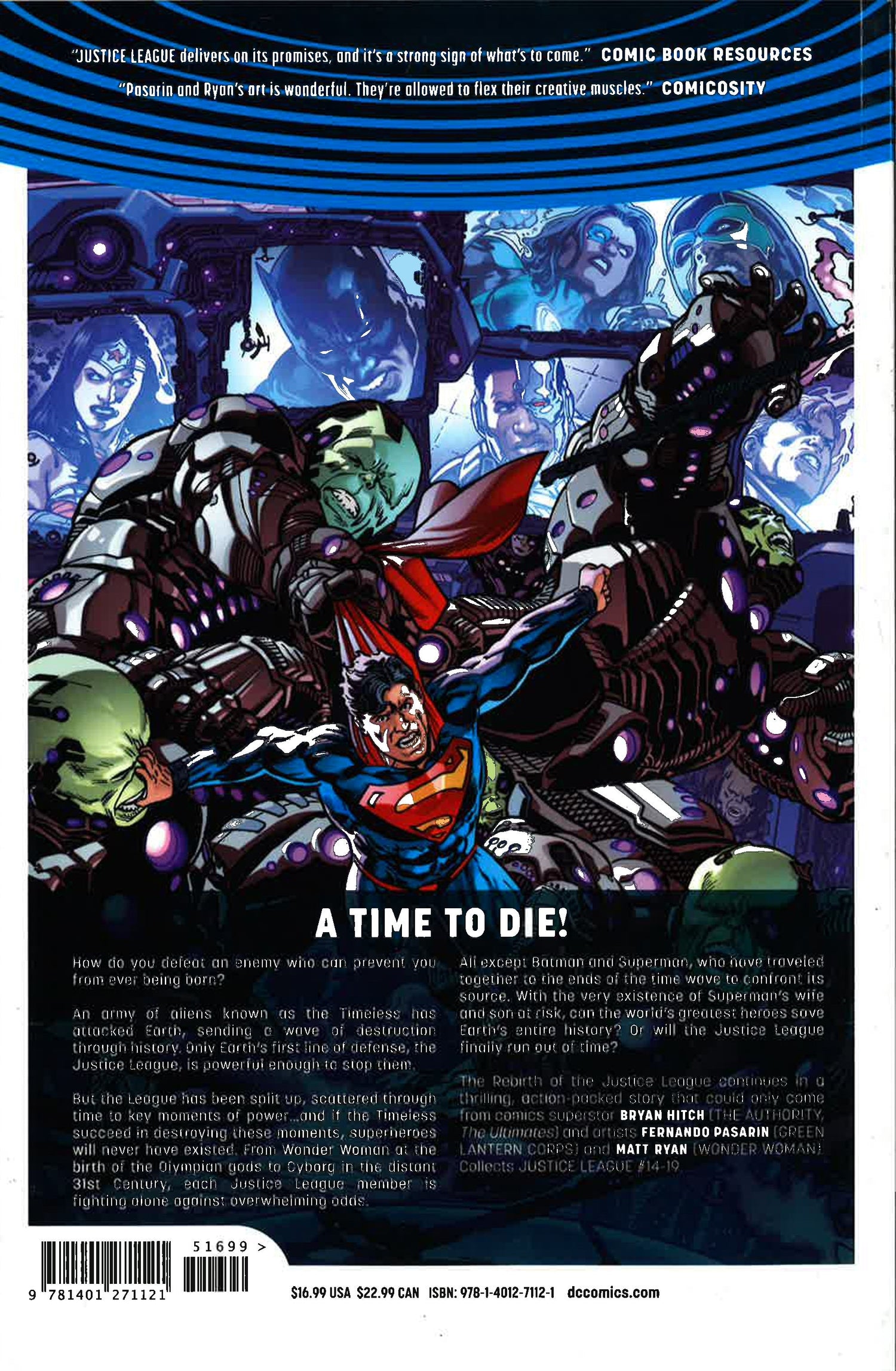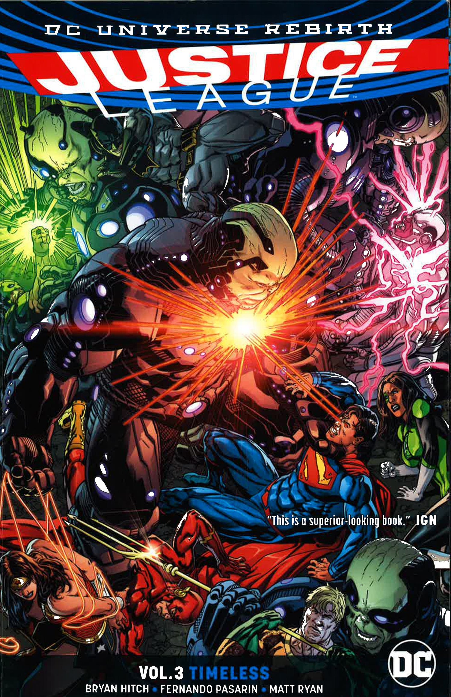 A part of DC Universe: Rebirth! Spinning directly out of the events of DC UNIVERSE REBIRTH, the Justice League continues its mission as it clashes with the Suicide Squad in these brand-new epics. Then, in a massive story that has its roots in author Bryan Hitch's original epic from the pages of JUSTICE LEAGUE OF AMERICA, an alien force known only as the Timeless moves to dismantle our planet's entire timeline to stop the age of superheroes from ever beginning. Collects JUSTICE LEAGUE #12-17. Rebirth honors the richest history in comics, while continuing to look towards the future. These are the most innovative and modern stories featuring the world's greatest superheroes, told by some of the finest storytellers in the business.