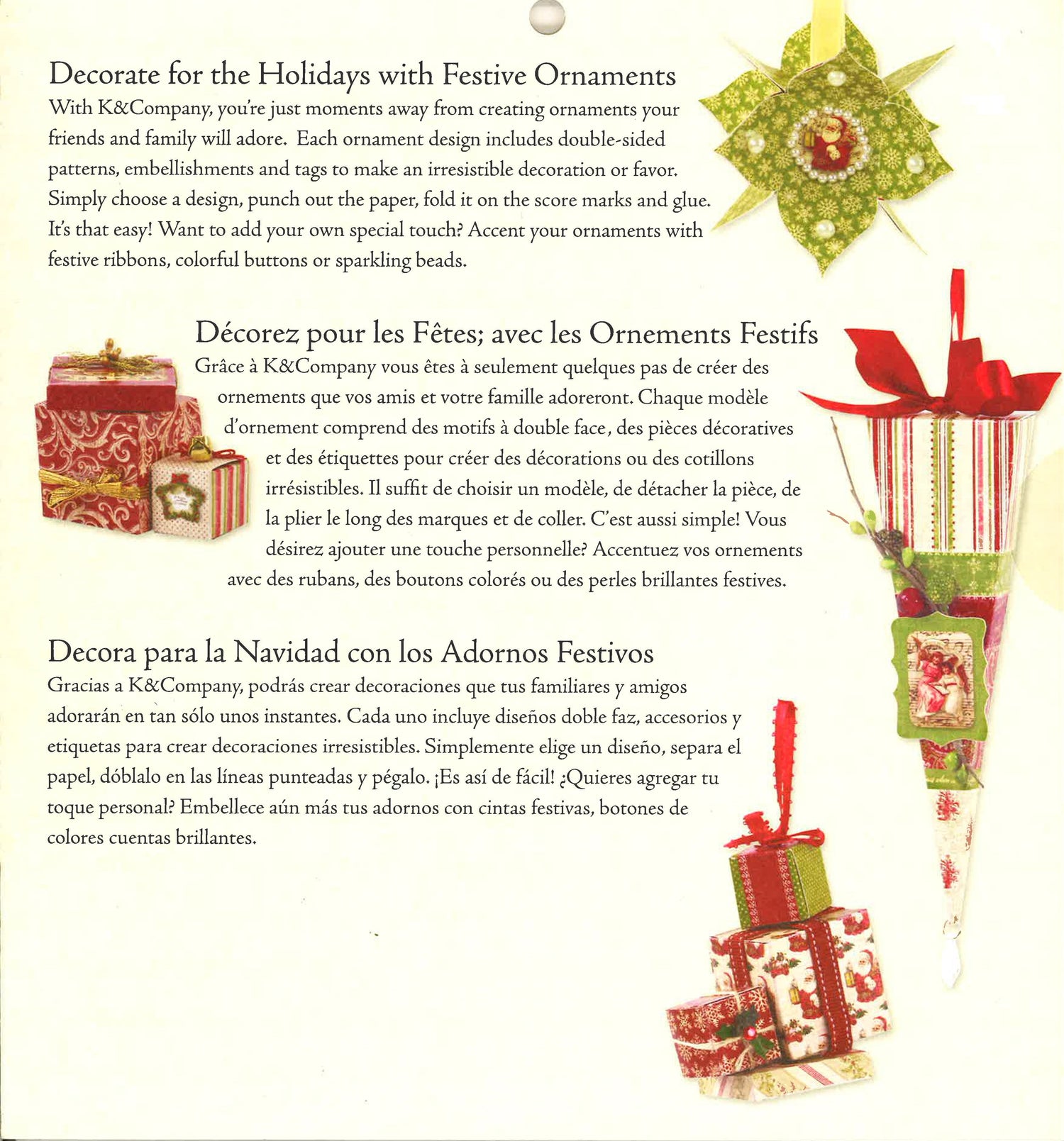 With K&Company, you're just moments away from creating ornaments your friends and family will adore. Each ornament design includes double-sided patterns, embellishments and tags to make an irresistible decoration or favor.