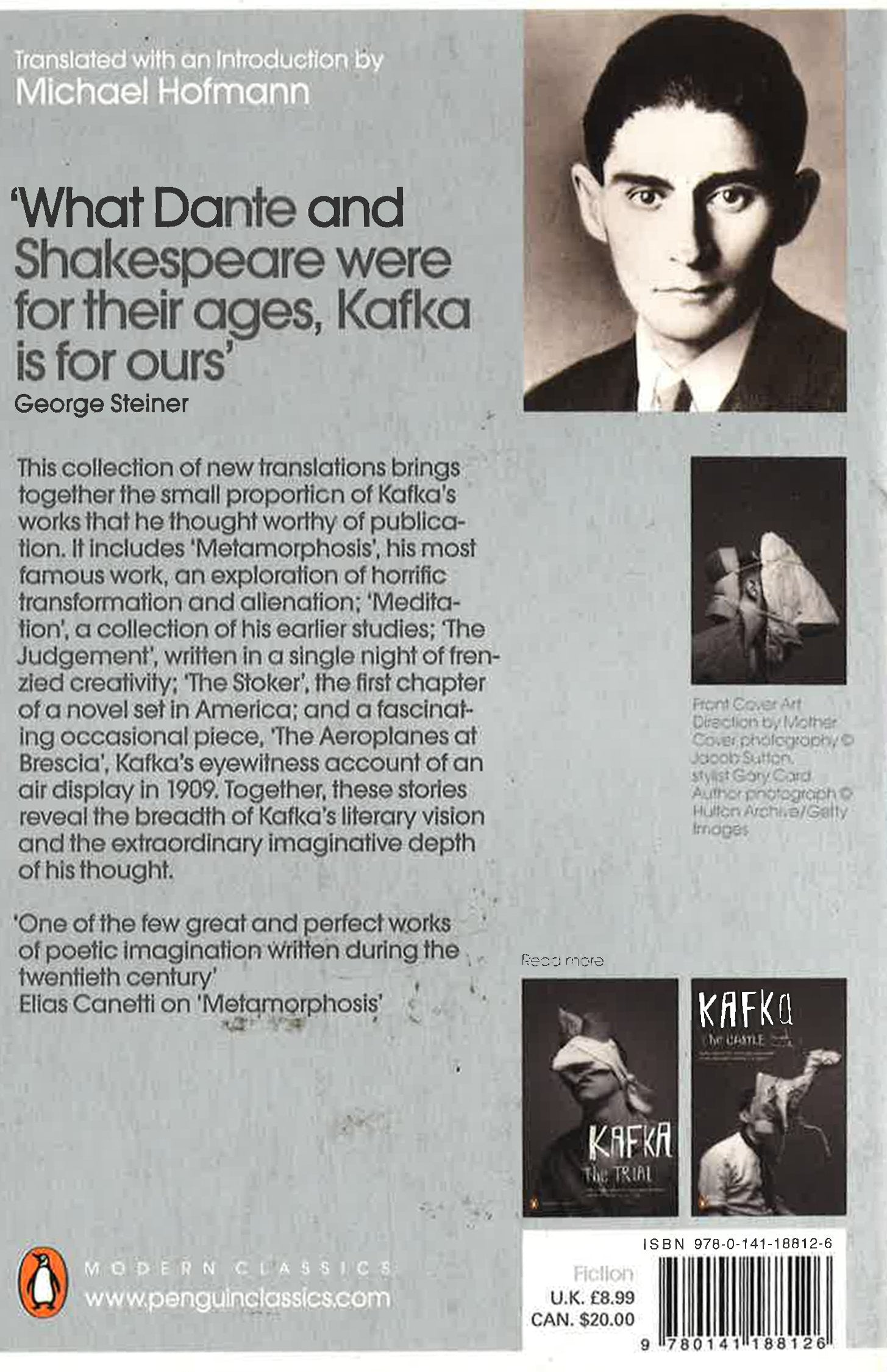 Franz Kafka's Metamorphosis and Other Stories is translated from the German with an introduction by Michael Hofmann in Penguin Modern Classics. This collection of new translations brings together the small proportion of Kafka's works that he thought worthy of publication. It includes 'Metamorphosis', his most famous work, an exploration of horrific transformation and alienation; 'Meditation', a collection of his earlier studies; 'The Judgement', written in a single night of frenzied creativity; 'The Stoker', the first chapter of a novel set in America; and a fascinating occasional piece, 'The Aeroplanes at Brescia', Kafka's eyewitness account of an air display in 1909. Together, these stories reveal the breadth of Kafka's literary vision and the imaginative depth of his thought.Franz Kafka (1883-1924) was a Czech-born German-speaking insurance clerk who despised his job, preferring to spend his time writing. Nevertheless, Kafka published little during his lifetime, and ordered his closest friend to burn the mass of unpublished manuscripts, now familiar to us as some of the most influential novels and short stories of the twentieth century, after his death. Kafka's novels, all published posthumously, include The Trial, The Castle, and Amerika.If you enjoyed Metamorphosis and Other Stories, you might like Kafka's The Trial, also available in Penguin Modern Classics'What Dante and Shakespeare were for the ages, Kafka is for ours ... His relevance is absolutely unbroken'George Steiner'One of the few great and perfect works of poetic imagination written during the twentieth century'Elias Canetti on 'Metamorphosis'