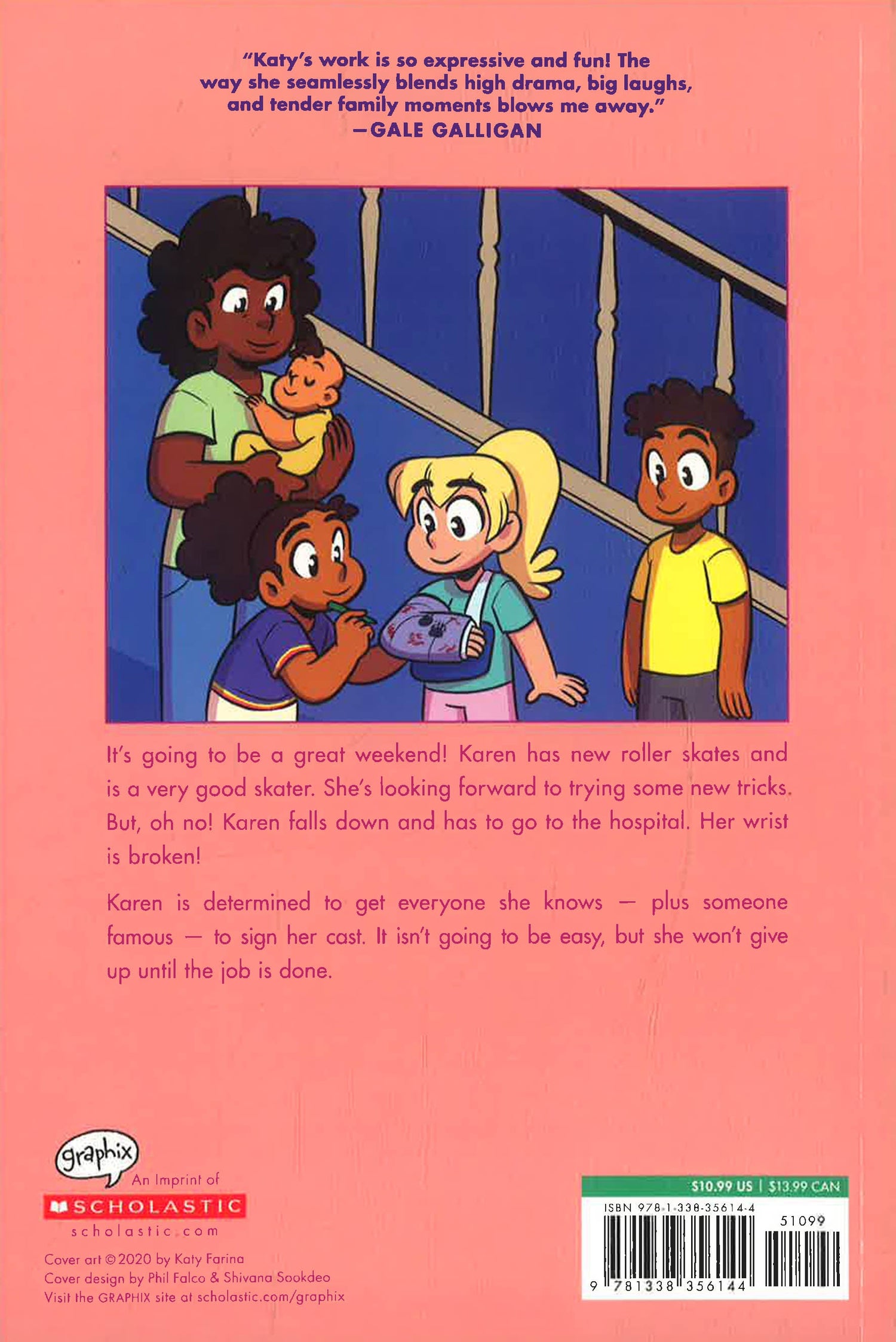 Another graphic novel in this fun series spin-off of The Baby-sitters Club, featuring Kristy's little stepsister! It's going to be a great weekend! Karen has new roller skates and is a very good skater. She's looking forward to trying some new tricks. But, oh no! Karen falls down and has to go to the hospital. Her wrist is broken! Karen is determined to get everyone she knows - plus someone famous - to sign her cast. It isn't going to be easy, but she won't give up until the job is done. The next installment in the Babysitters spin-off series, starring Kristy's little stepsister, Karen THE BABYSITTERS CLUB is now a major Netflix series THE BABYSITTERS CLUB is one of the most popular children's series in history A timeless series that will be cherished for generations to come