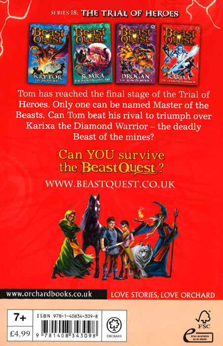 There are FOUR thrilling adventures to collect in the Beast Quest: The Trial of Heroes series: Krytor the Blood Bat; Soara the Stinging Spectre; Drogan the Jungle Menace; Karixa the Diamond Warrior.