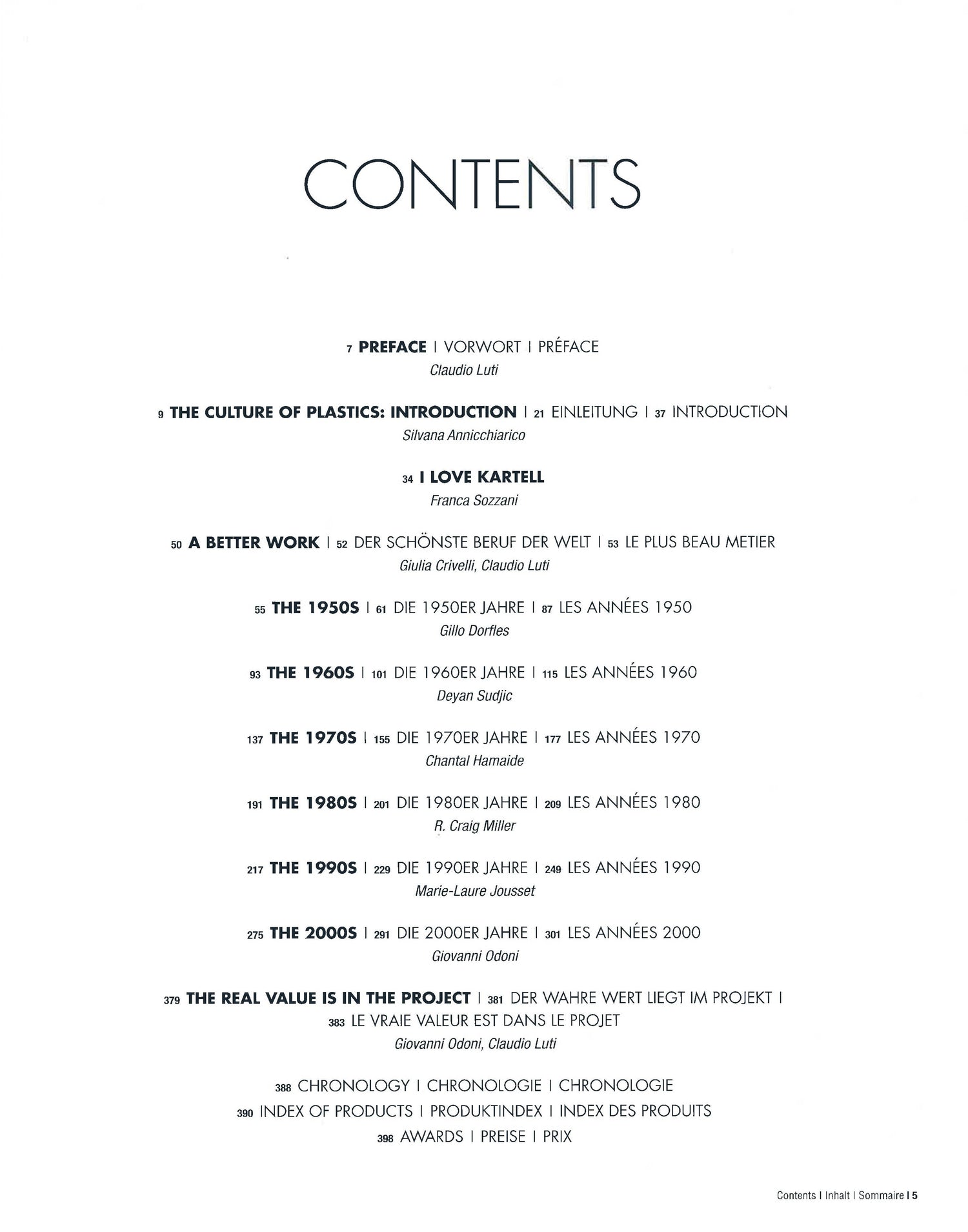 Plastic culture. The enduring lure of a material for over 60 years. Italian company Kartell, founded in 1949, is famous around the world for having invented the culture of plastic furniture and interior furnishings. Particularly since the plastic-loving era of the 1960s and 70s, Kartell has become an enduring household name; from the iconic designs of Joe Columbo in the 1960s to more recent hits such as Philippe Starck's "Ghost Chairs" or Ron Arad's "Book Worms" shelves, Kartell has consistently chosen to work with the world's most talented designers while reinventing plastic as a quality material for the new age. This survey covers the entire history of the company decade by decade, exploring all aspects of its evolution as well as the social and technological qualities of Kartell products. Also included are interviews with "Mr Plastic" Claudio Luti, director of Kartell for more than 20 years and architect of the new boom, historians, and, star designers, as well as those involved in the production process, illuminating every step from the idea to the finished product.