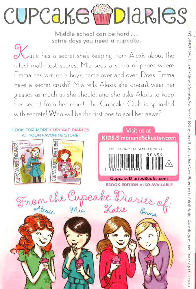 Katie has a tough time keeping one secret...what happens when she has to keep four? All of the cupcake girls have secrets and are ready to burst! Katie loves knowing a secret; it's just tough for her to keep them! And in this story all her friends have told her a secret! From new crushes to someone cheating on a math test, Katie doesn't know what to do with all of this juicy information! Can the Cupcake Club survive with everyone keeping secrets from one another? The girls soon realize they need to confide in each other--after all what are best friends for if not for keeping your secrets?
