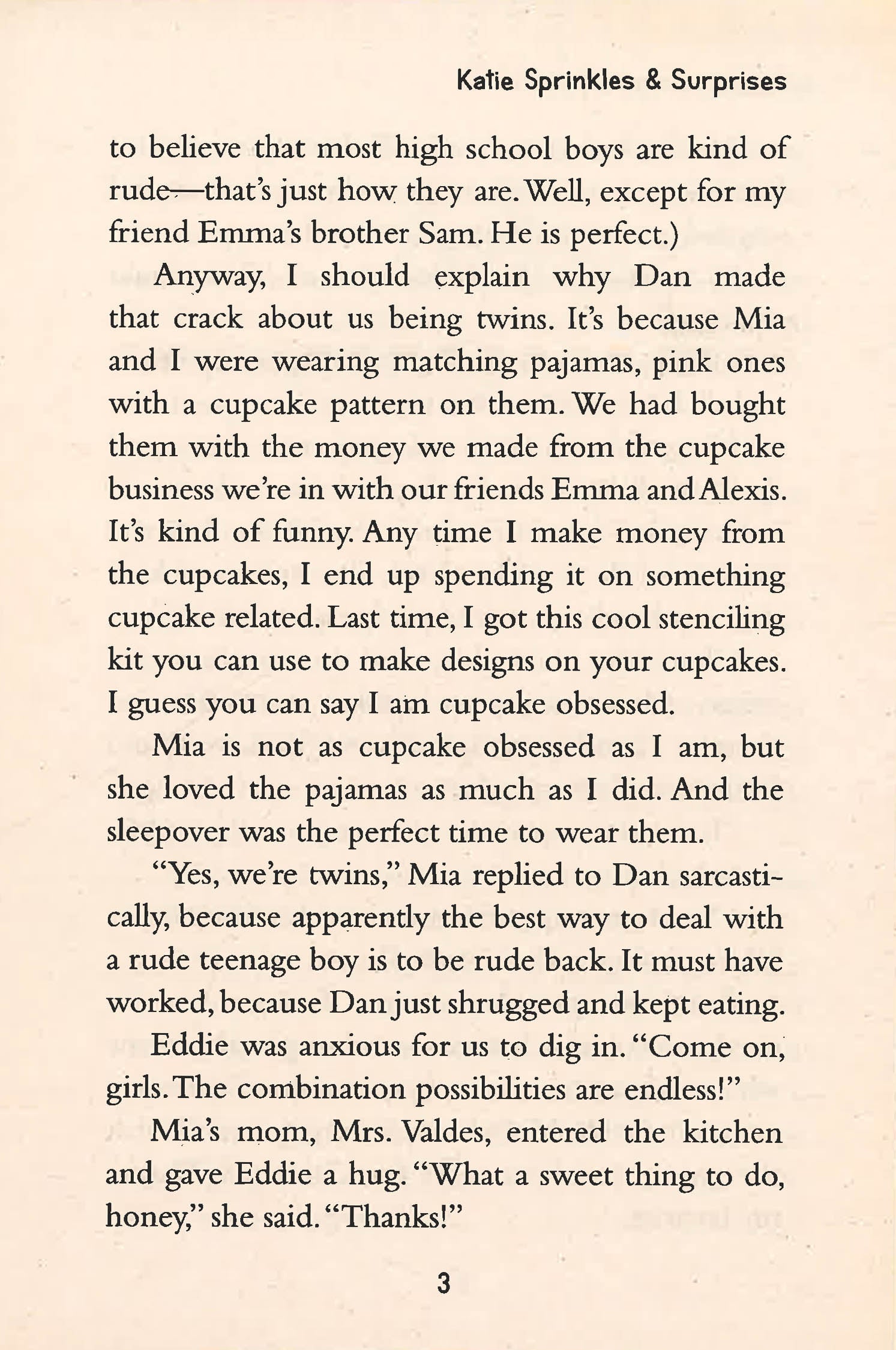 When Katie's mom says it's time for Katie to meet her new boyfriend, Katie is excited and nervous. She thinks she's prepared, but she's shocked instead. Her mom's boyfriend is Jeff Green--as in Mr. Green, a math teacher in her grade! Katie tries to act as normal as possible, but when mean girl Olivia finds out, she tells everyone that Katie is getting special treatment because her mom is dating a teacher. How can Katie stop Olivia and deal with all the new events in her life? It's the Cupcake Club to the rescue, as Katie's friends come to her defense, including an unexpected ally.
