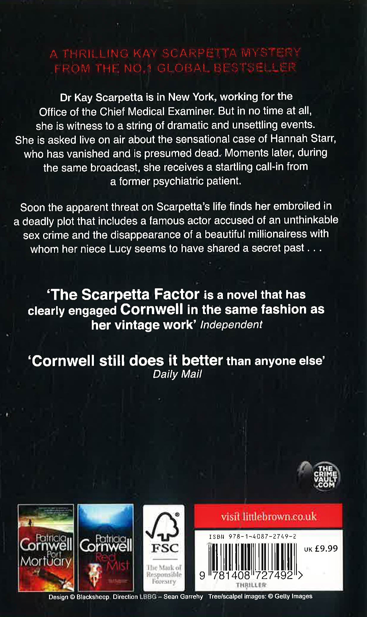 It is the week before Christmas. A tanking economy has prompted Dr. Kay Scarpetta-despite her busy schedule and her continuing work as the senior forensic analyst for CNN-to offer her services pro bono to New York City's Office of the Chief Medical Examiner. In no time at all, her increased visibility seems to precipitate a string of unexpected and unsettling events, culminating in an ominous package-possibly a bomb-showing up at the front desk of the apartment building where she and her husband, Benton, live. Soon the apparent threat on Scarpetta's life finds her embroiled in a surreal plot that includes a famous actor accused of an unthinkable sex crime and the disappearance of a beautiful millionaire with whom her niece, Lucy, seems to have shared a secret past.