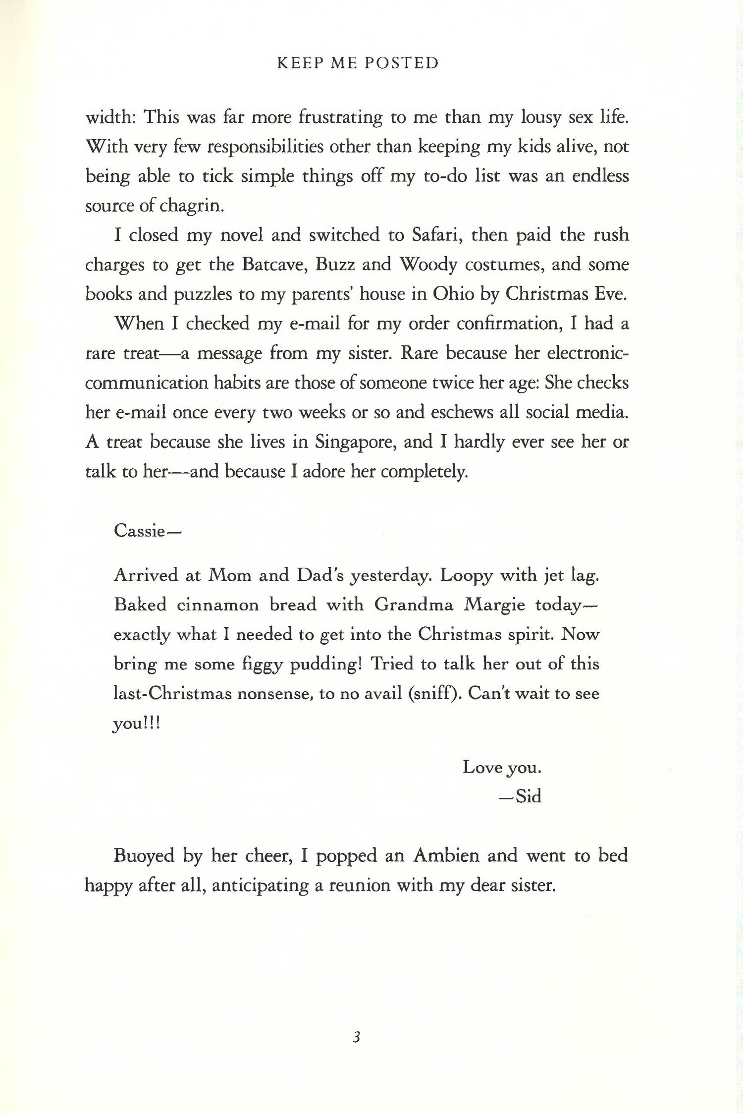 Two sisters share the surprising highs and cringe-worthy lows of social media fame, when their most private thoughts become incredibly public in this fresh and funny debut novel. Sisters Cassie and Sid Sunday have not done a bang-up job of keeping in touch. In their defense, it hasn't been easy: life veered in sharply different directions for the once-close sisters. Today, beautiful and big-hearted Sid lives an expat's life of leisure in far-off Singapore, while harried, iPhone-clutching Cassie can't seem to make it work as a wife and a mom to twin toddlers in Manhattan. It doesn't help that Sid spurns all social media while Cassie is addicted to Facebook. So when Sid issues a challenge to reconnect the old-fashioned way--through real, handwritten letters--Cassie figures, why not? The experiment exceeds both of their expectations, and the letters become a kind of mutual confessional that have real and soul-satisfying effects. And they just might have the power to help Cassie save her marriage, and give Sid the strength to get her life back on track. But first, one of Cassie's infamous lapses in judgment comes back to bite her, and all of the letters wind up the one place you'd never, ever want to see them: the Internet...