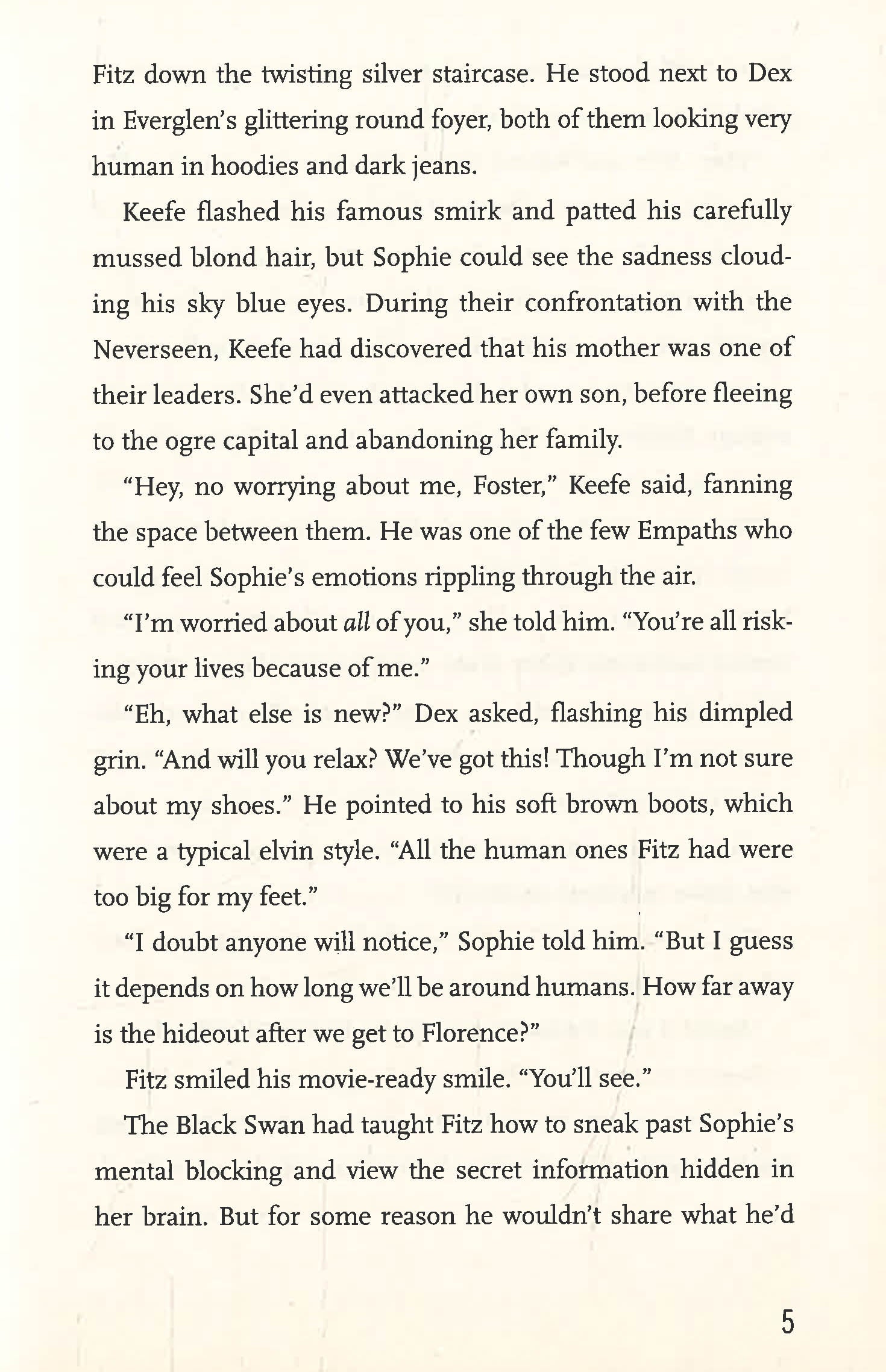 Her closest friends from the Lost Cities have gone with her to join the Black Swan. They still have doubts about the shadowy organization, but the only way to find answers is to start working