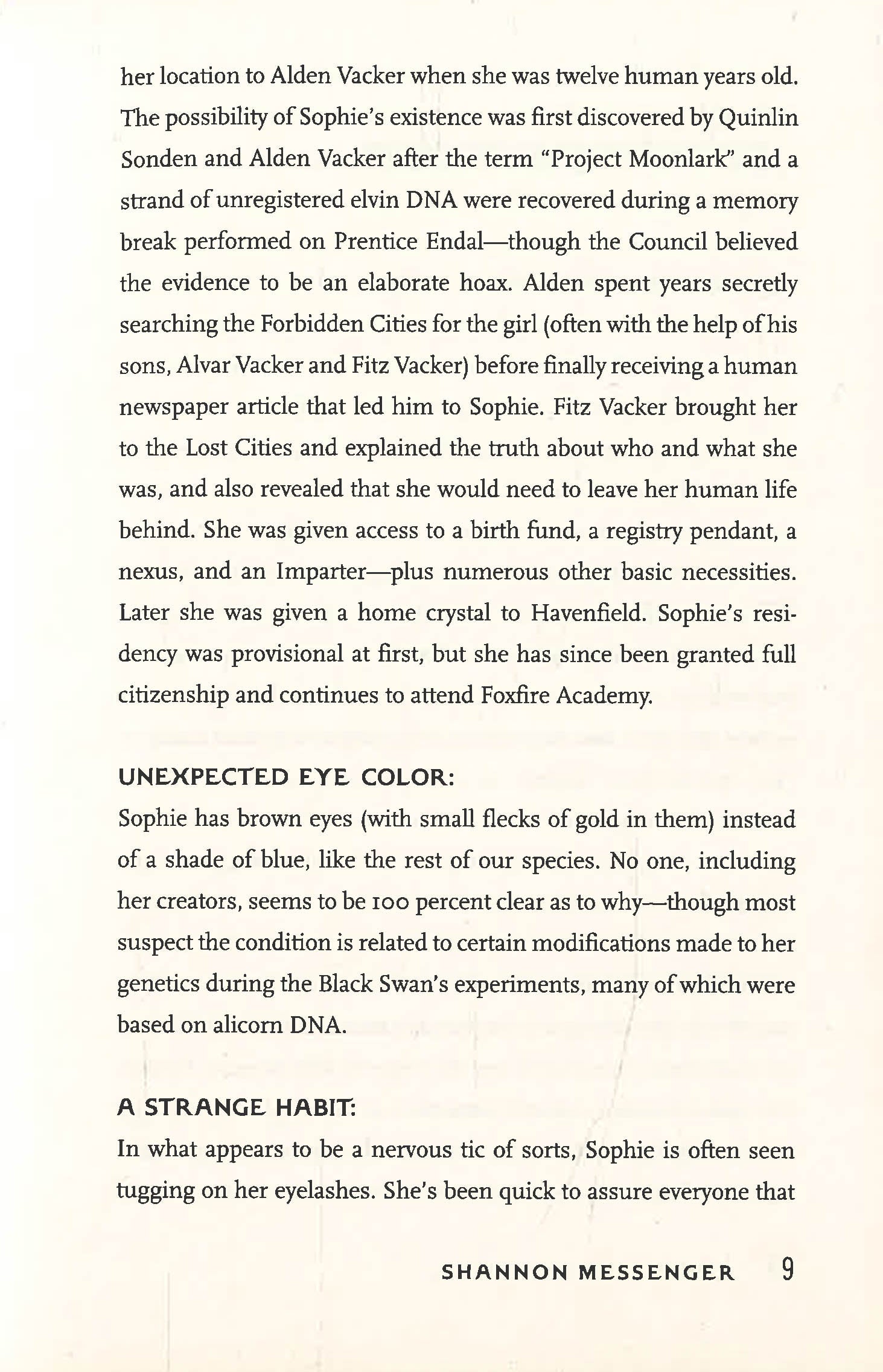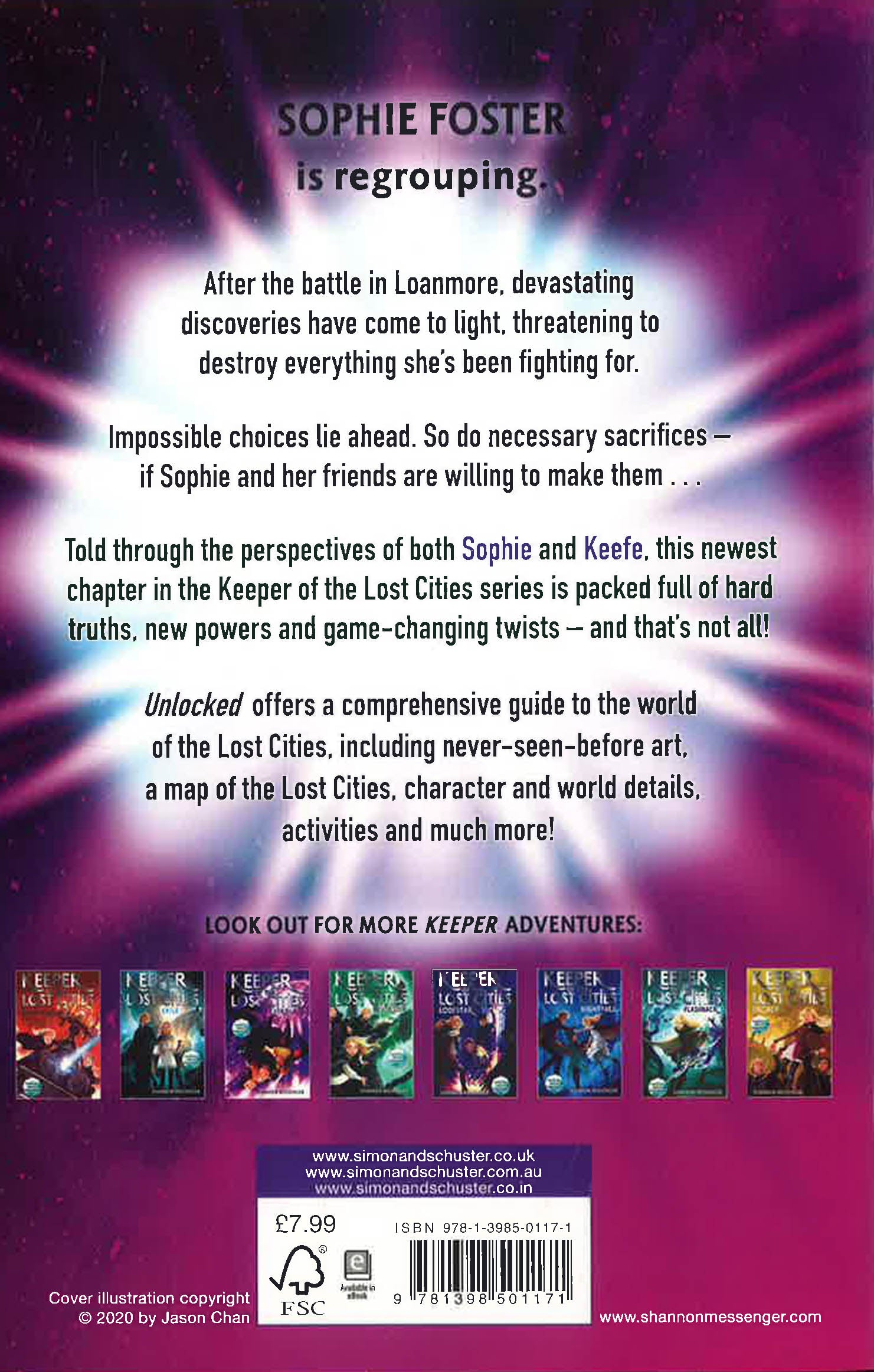 Book 8.5 in the New York Times bestselling Keeper of the Lost Cities series delivers what fans have been begging for! Told in an exciting new way, the saga continues with plenty of huge reveals and shocking new twists – plus a complete series guide with beautiful colour and black-and-white illustrations and other awesome bonuses, never seen before in the UK!