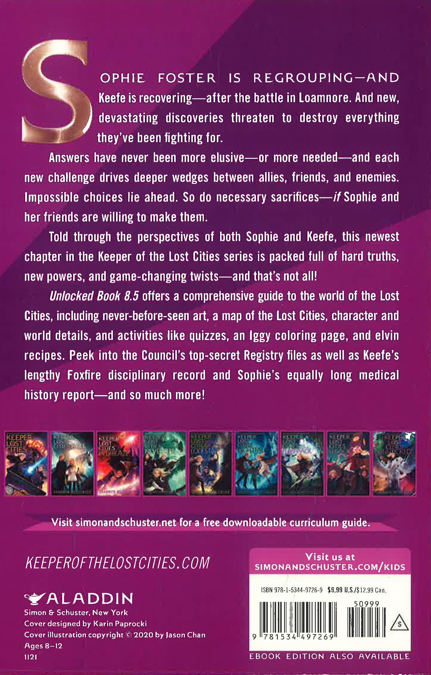 Unlocked also includes a comprehensive guide to the world of the Lost Cities, featuring new character and world details that have never been revealed before—plus fun bonuses like Keeper-themed recipes, a detailed map of the Lost Cities, gorgeous illustrations, and so much more!