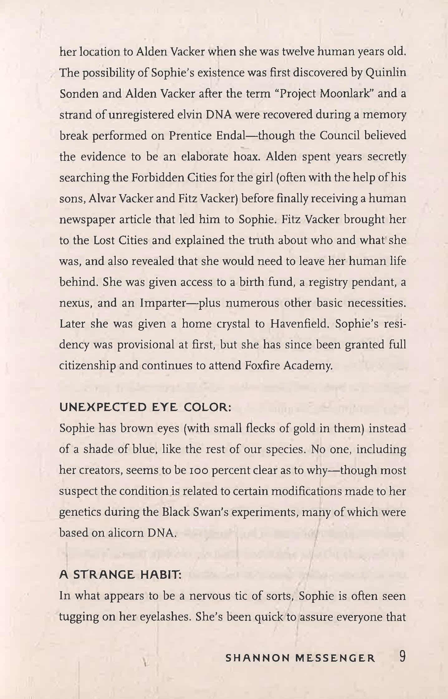 Book 8.5 in the New York Times and USA TODAY bestselling Keeper of the Lost Cities series delivers what fans of the series have been begging for! Told in an exciting new way, the saga continues with plenty of huge reveals and shocking new twists—plus a complete series guide with beautiful color and black-and-white illustrations and other awesome bonuses!