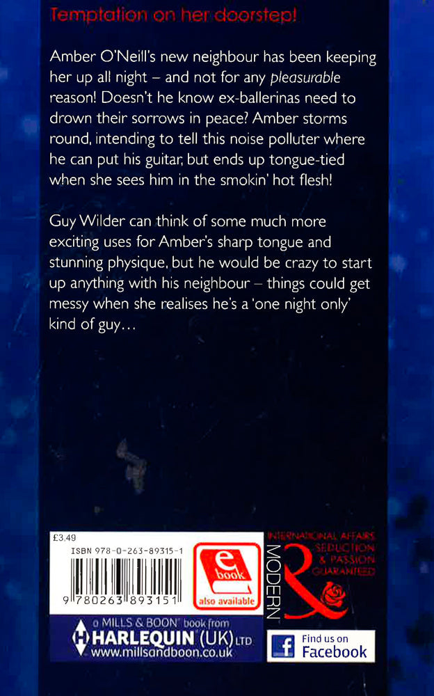 Temptation on her doorstep! Amber O'Neill's new neighbour has been keeping her up all night - and not for any pleasurable reason! Doesn't he know ex-ballerinas need to drown their sorrows in peace? Amber storms round, intending to tell this noise polluter where he can put his guitar, but ends up tongue-tied when she sees him in the smokin' hot flesh! Guy Wilder can think of some much more exciting uses for Amber's sharp tongue and stunning physique, but he would be crazy to start up anything with his neighbour - things could get messy when she realises he's a `one night only' kind of guy...