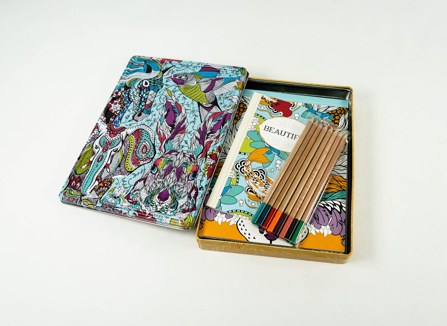 This beautiful Wild Keepsake Coloring Tin contains 2 coloring books, 2 double-sided posters to color and 8 stylish coloring pencils. Color and discover the wild world and lose yourself on a wonderful journey. Explore forests, go on safari and discover the wild frontier, and let the beauty of nature inspire and delight. It's time to feast your eyes and get creative.