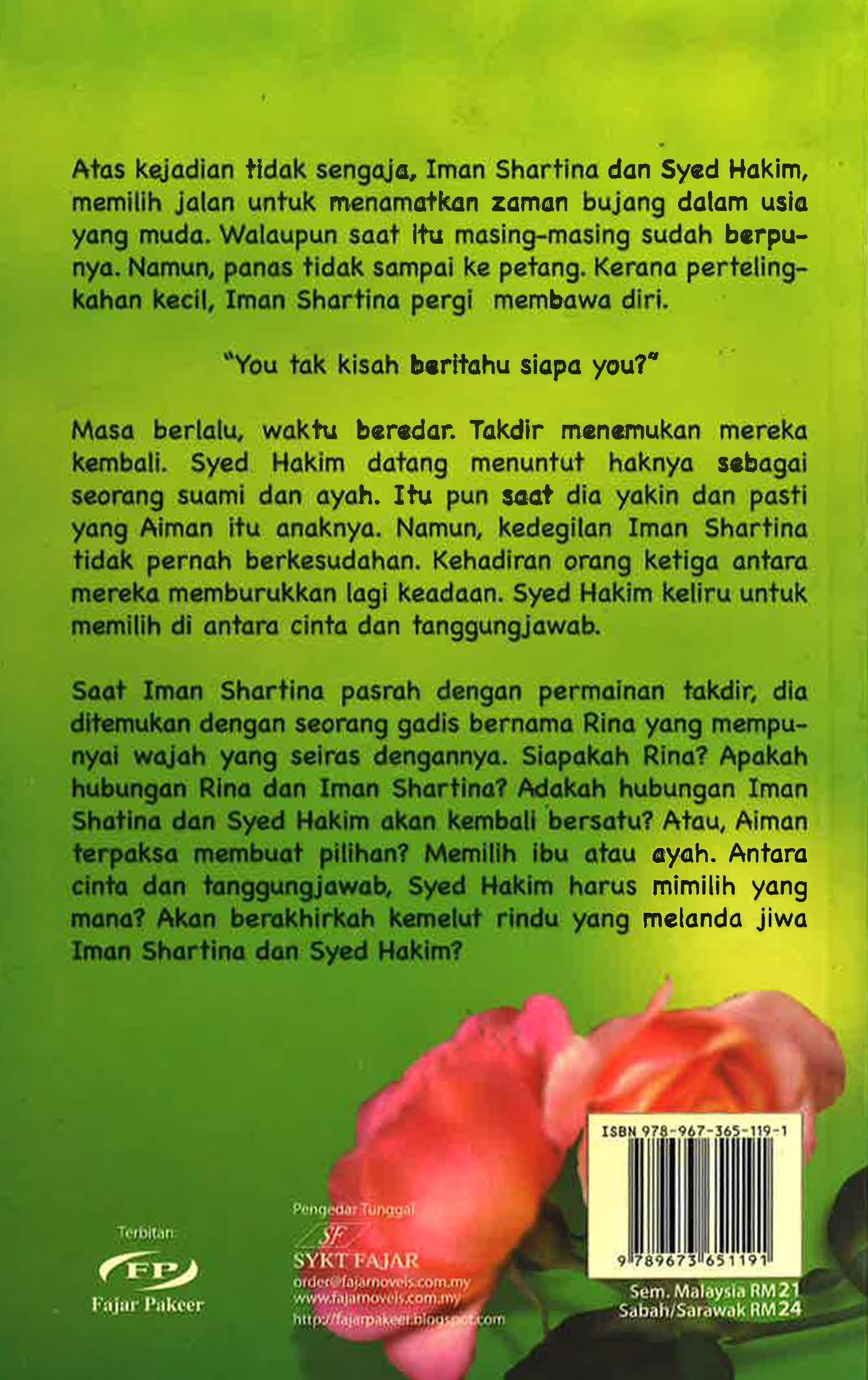 Masa berlalu, waktu beredar. Takdir menemukan mereka kembali. Syed Hakim datang menuntut haknya sebagai seorang suami dan ayah. Itu pun saat dia yakin dan pasti yang Aiman itu anaknya. Namun, kedegilan Iman Shartina tidak pernah berkesudahan. Kehadiran orang ketiga antara mereka memburukkan lagi keadaan. Syed Hakim keliru untuk memilih di antara cinta dan tanggungjawab.