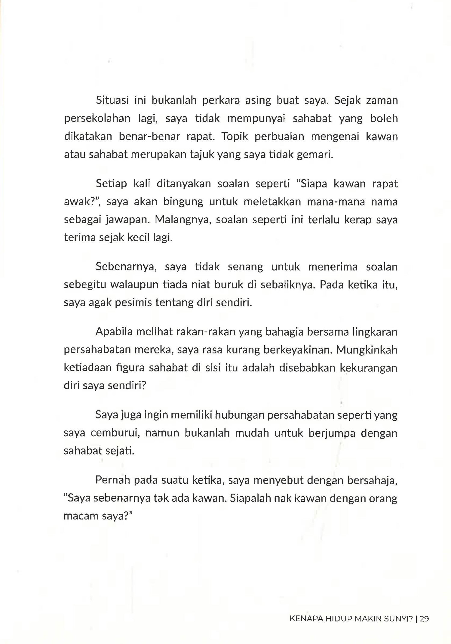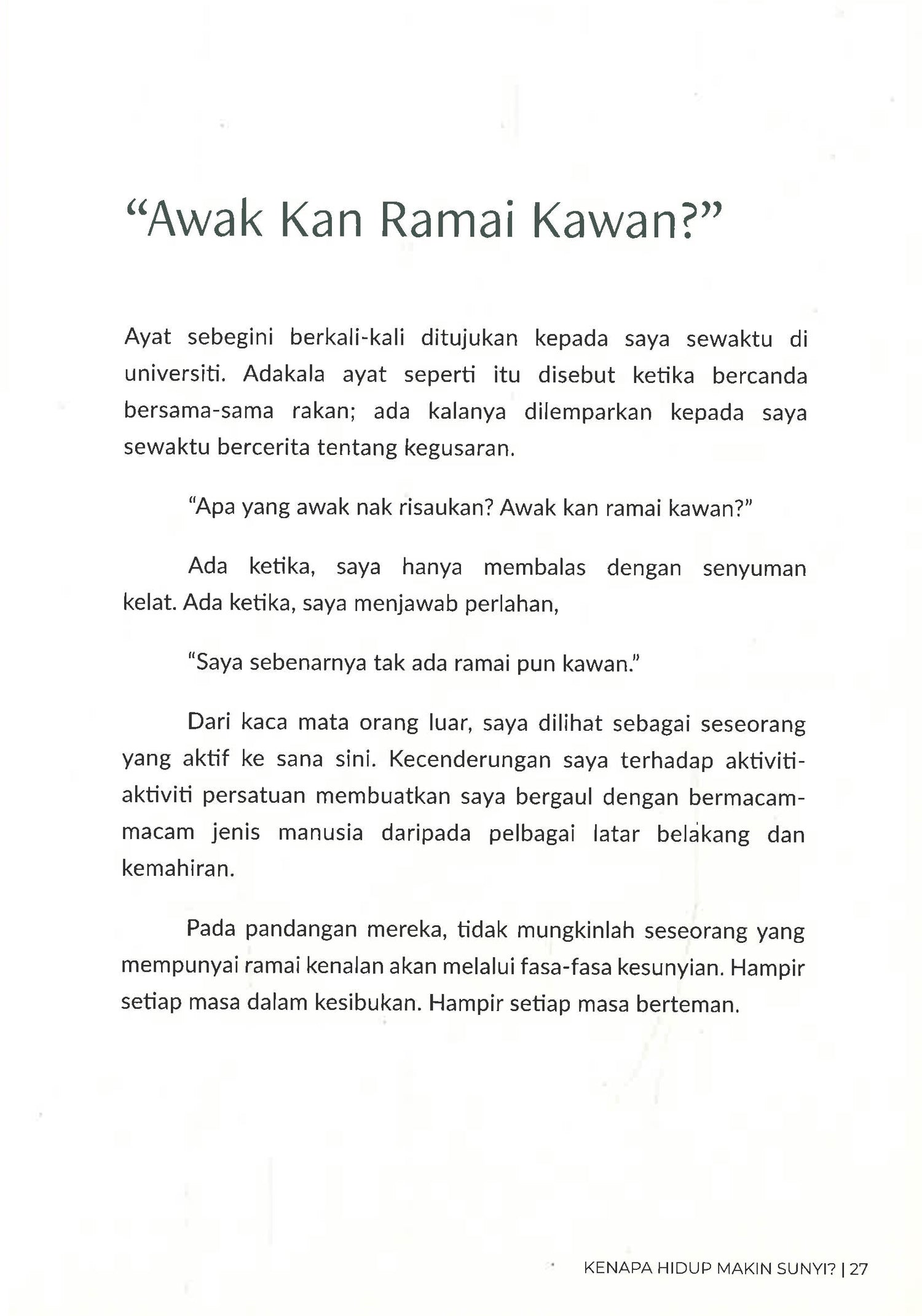 Kebanyakan kita pasti pernah merasai sunyi dan sendiri dalam hidup sehari-hari. Orang-orang yang dahulunya rapat mungkin sudah menempuh jalan hidup masing-masing. Setiap yang kita kenali berubah, dan sepertinya tiada lagi tempat untuk kita bercerita atau meluah.