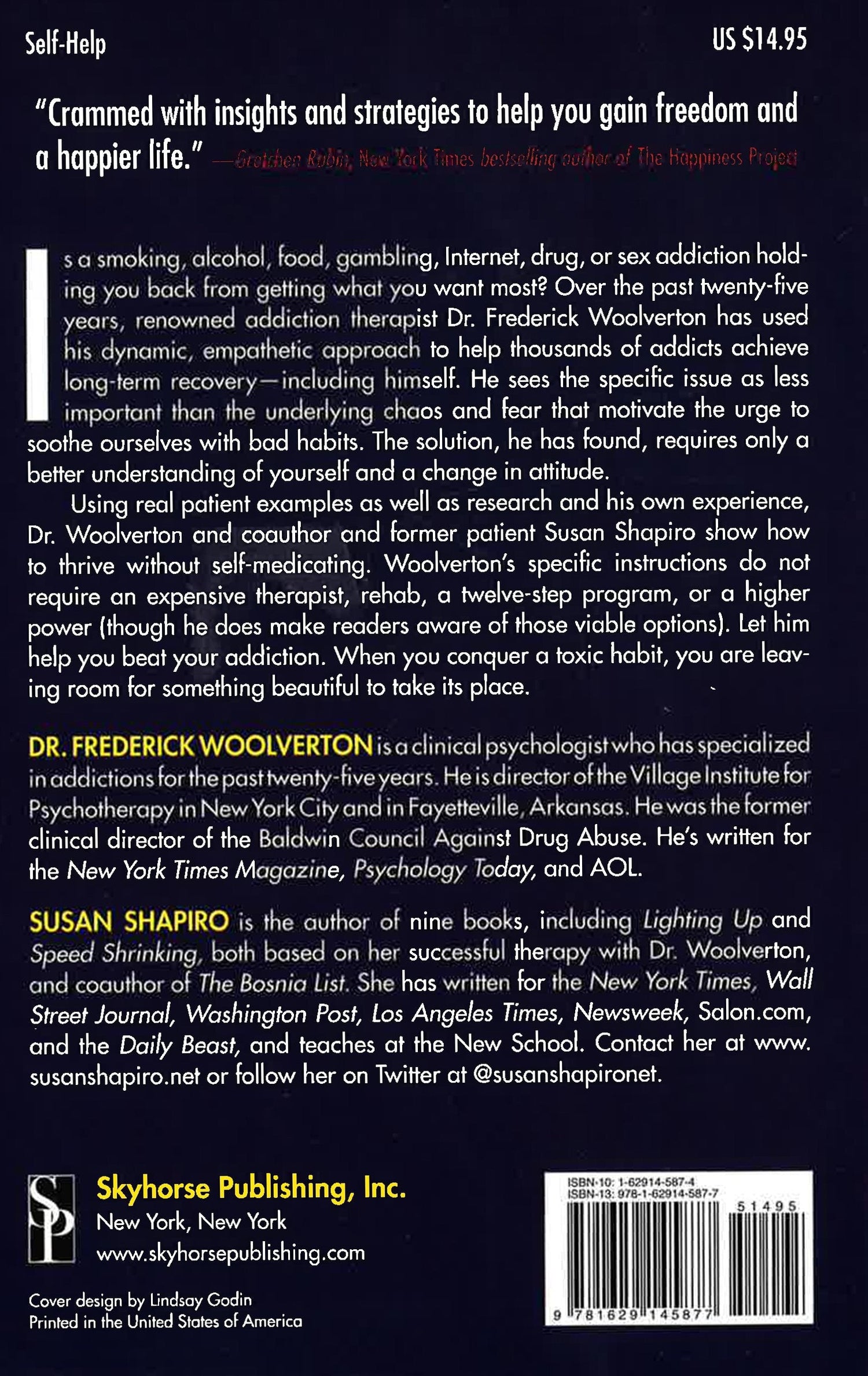 Is a smoking, alcohol, food, gambling, Internet, drug, or sex addiction holding you back from getting what you want most? Over the past twenty-five years, renowned addiction therapist Dr. Frederick Woolverton has used his dynamic, empathetic approach to help thousands of addicts achieve long-term recovery including himself. He sees the specific habit as less important than the underlying chaos and fear that motivate the urge to soothe ourselves with bad habits. The solution, he has found, requires only a better understanding of yourself and a change in attitude. Using real patient examples as well as research and his own experience, Dr. Woolverton and coauthor and former patient Susan Shapiro show how to thrive without self-medicating. Woolverton's specific instructions do not require an expensive therapist, rehab, a twelve-step program, or a higher power (though he does make readers aware of those viable options). Let him help you beat your addiction. When you conquer a toxic habit, you are leaving room for something beautiful to take its place.