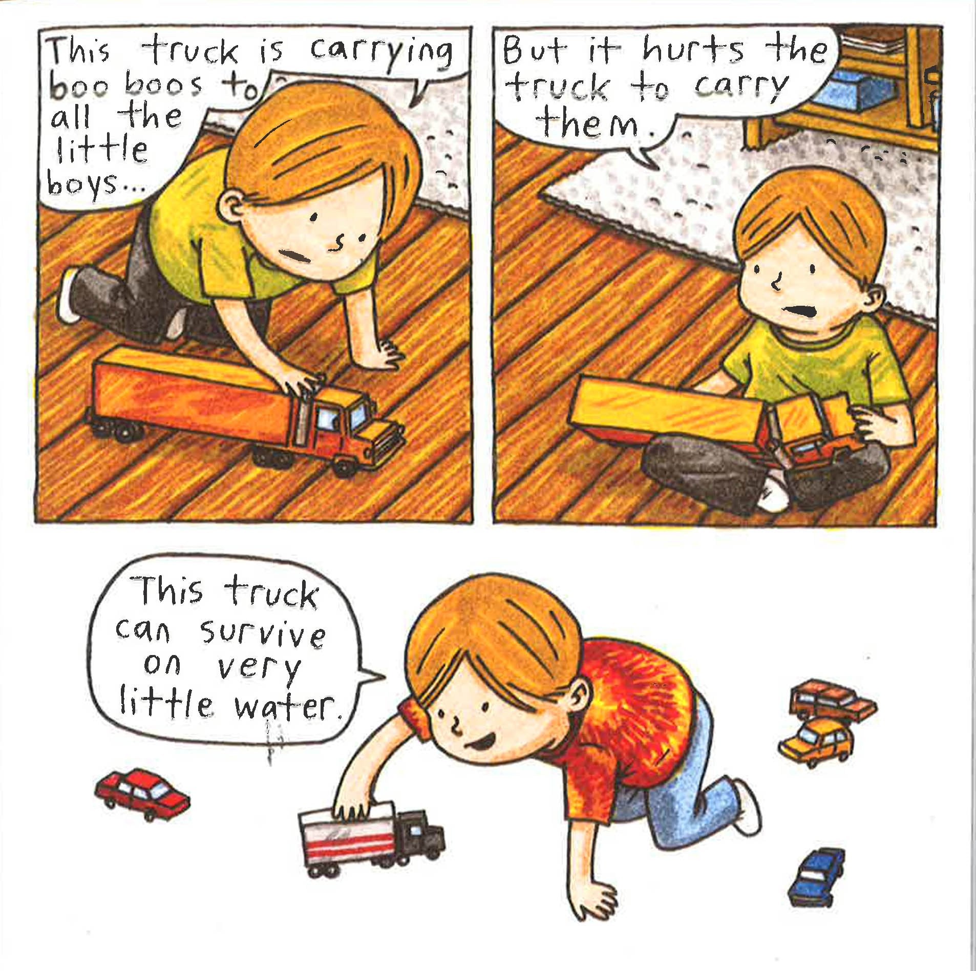 From the bestselling author of Darth Vader and Son and Vader's Little Princess comes this funny, perceptive book that celebrates the weird and wonderful moments of raising a child. Brown hilariously illustrates observations of his five-year-old about the world around him, from complaining about food to playing with toys ('This was the biggest dinosaur that ever played the game') to unusual declarations ('I'm the master of bacon') and making odd comments to his parents ('Don't feel happy at me!'). In charming, colourful panels, Brown capturing the sweet and surreal times parents everywhere experience with curious, pure-minded kids.