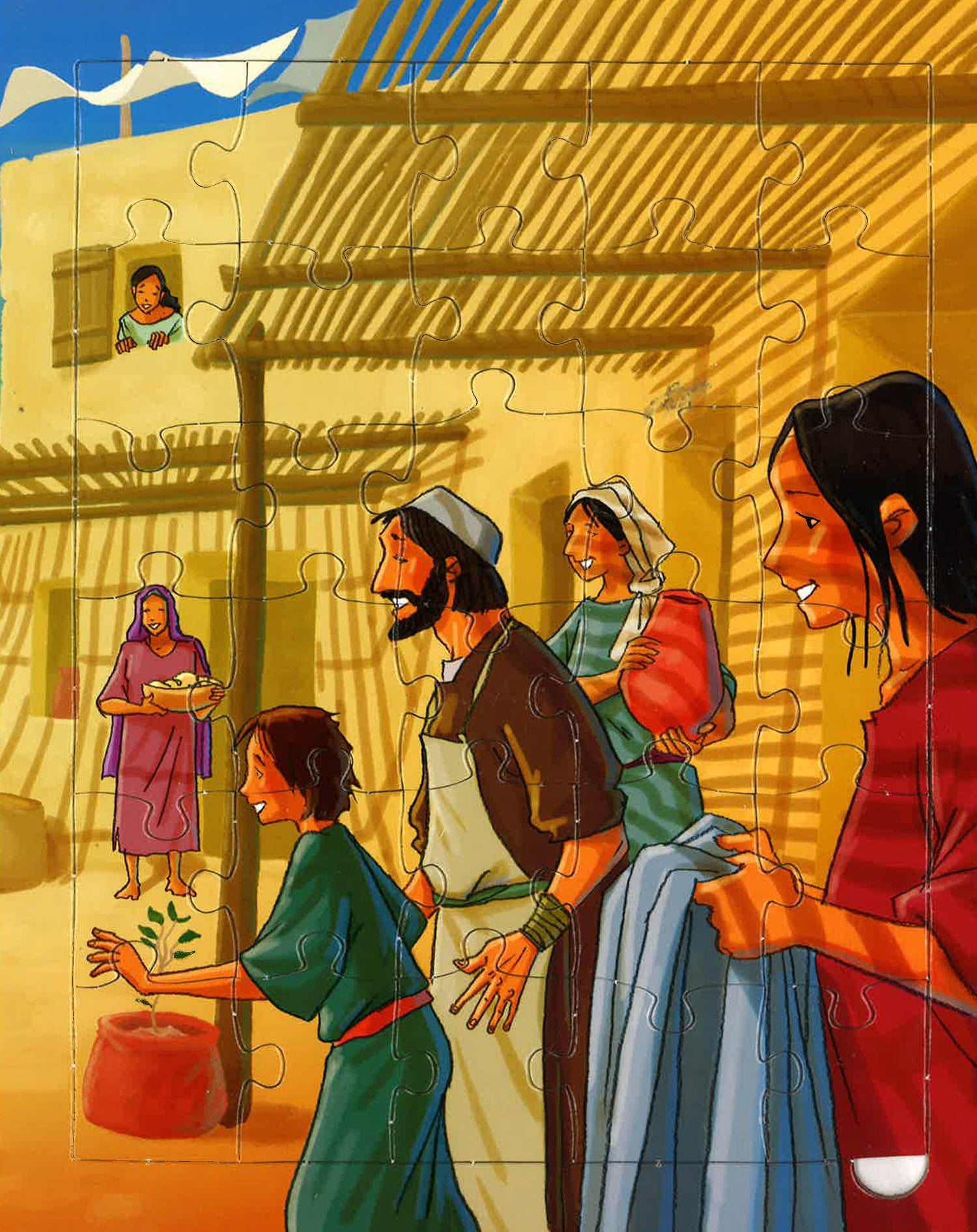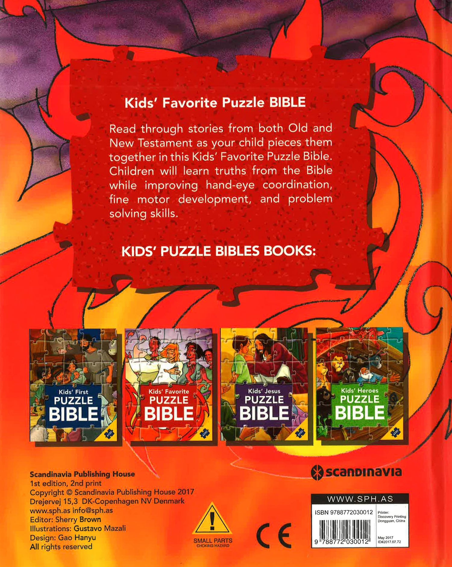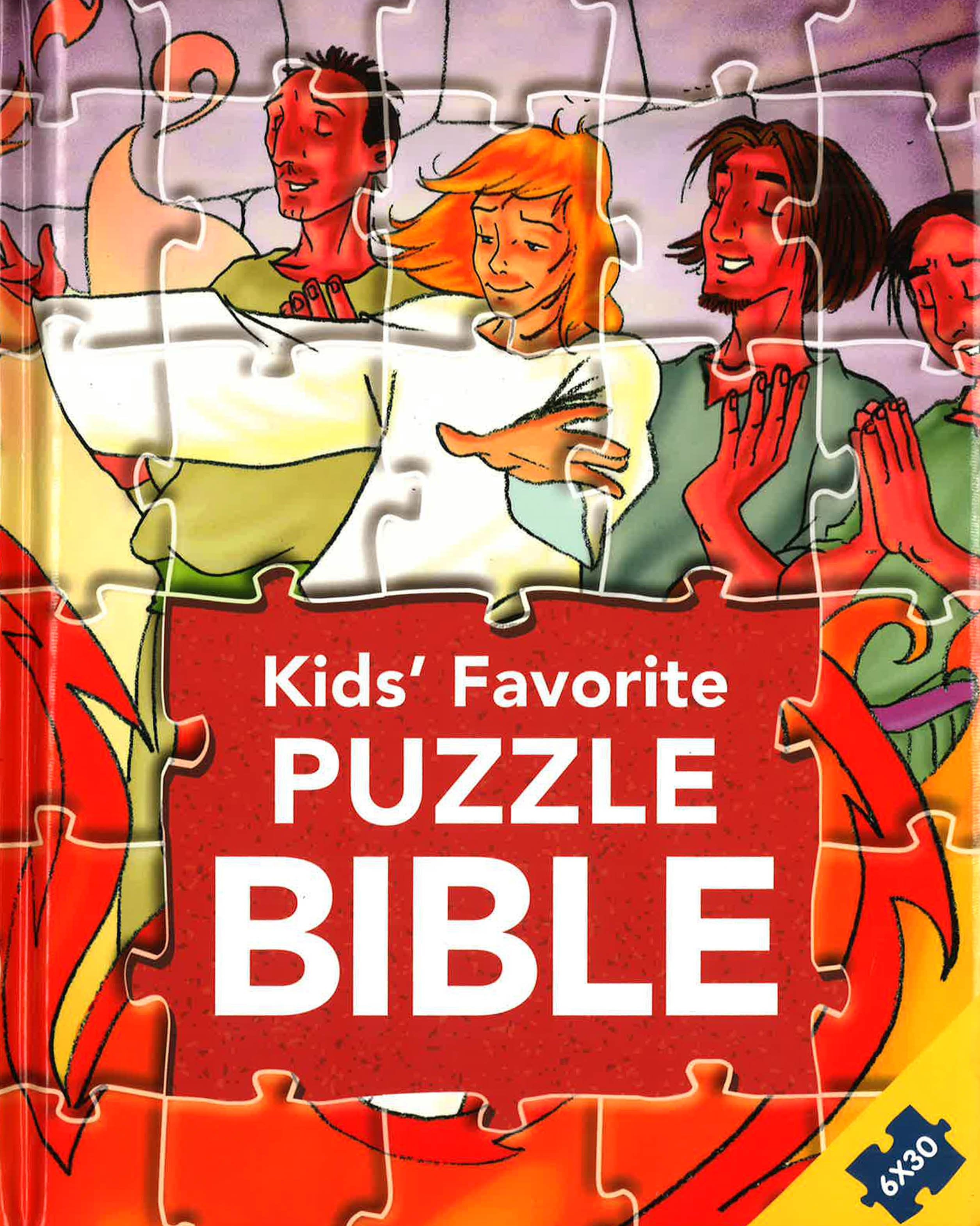 The Kids Favorite Puzzle Bible contains a selection of expressive and colourful pictures portraying beloved Bible stories from the Old and New Testament such as Genesis and Jesus Stills the Storm illustrated by Gustavo Mazali. There are 6 iconic Bible stories with text on the left accompanied by a 25-piece jigsaw puzzle on the right. The pieces can easily be removed and placed back again on the page. Made in durable cardboard, the pieces don t fall out, even when the page is held upside down. The series provides great opportunity for adults looking to spend you n me time with a child sharing the best-loved stories and heroes of the Bible as they read and play together. While having fun, engaged in the story both mind and body, kids will get to know famous Bible stories while improving hand-eye coordination and fine motor development.
