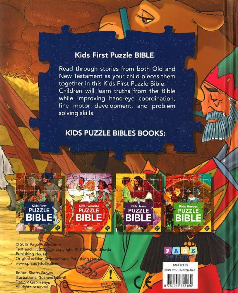Read through stories from both Old and New Testament as your child pieces them together in this Kids First Puzzle Bible. Children will learn truths from the Bible while improving hands-eye coordination, fine motor development, and problem solving skills. 2 IN 1 , A puzzle in a book!