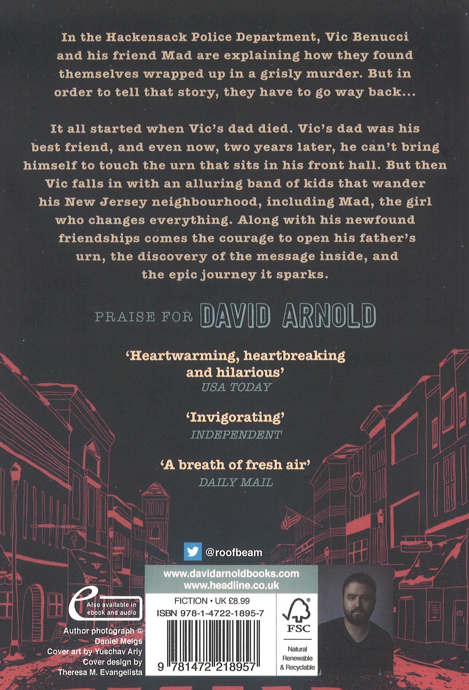 KIDS OF APPETITE by David Arnold is a tragicomedy of first love and devastating loss for fans of Rainbow Rowell and Jennifer Niven. In the Hackensack Police Department, Vic Benucci and his friend Mad are explaining how they found themselves wrapped up in a grisly murder. But in order to tell that story, they have to go way back... It all started when Vic's dad died. Vic's dad was his best friend, and even now, two years later, he can't bring himself to touch the Untouchable Urn of Oblivion that sits in his front hall. But one cold December day, Vic falls in with an alluring band of kids that wander his New Jersey neighbourhood, including Mad, the girl who changes everything. Along with his newfound friendships comes the courage to open his father's urn, the discovery of the message inside, and the epic journey it sparks.