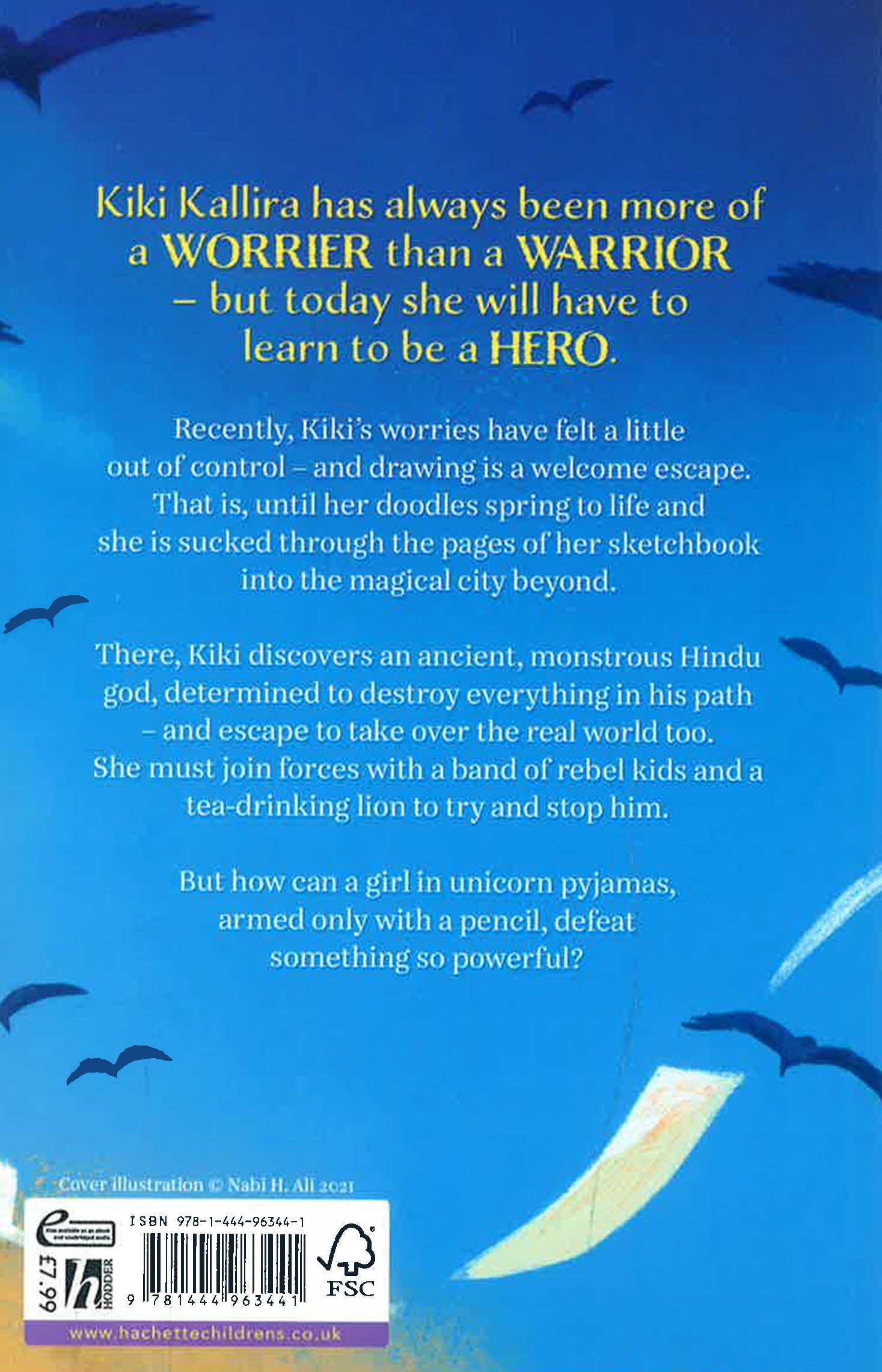 Kiki Kallira is more of a worrier than a warrior - but today she will learn to be a hero. The mythical beasts she loves to draw have come to life, and she is the only one who can defeat them. A middle-grade fantasy inspired by Hindu legends about anxiety, creativity and finding your own strengths. For 8+ fans of Abi Elphistone and The Land of Roar. Kiki Kallira has always been a worrier. Did she lock the front door? Is there a terrible reason her mum is late? Recently her anxiety has been getting out of control, but one thing that has always soothed her is drawing. Kiki's sketchbook is full of fantastical doodles of the Hindu myths and legends her mother has told her since she was tiny.