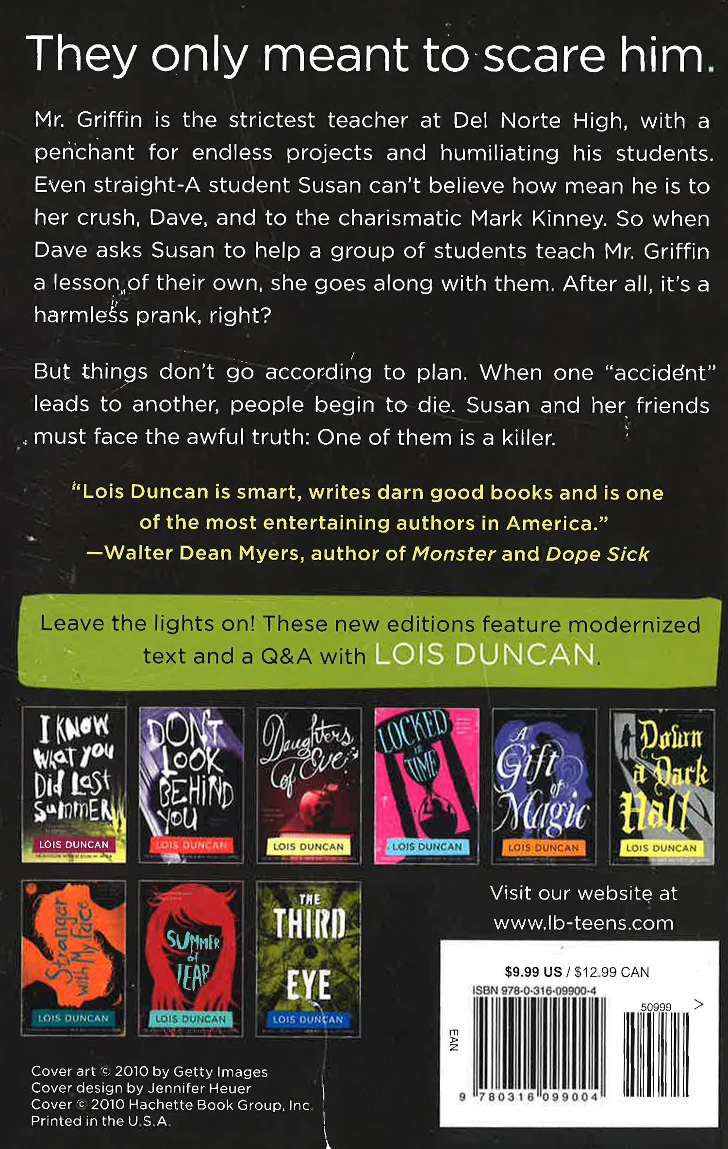 Mr. Griffin is the strictest teacher at Del Norte High, with a penchant for endless projects and humiliating his students. Even straight-A student Susan can't believe how mean he is to her crush, Dave, and to the charismatic Mark Kinney. So when Dave asks Susan to help a group of students teach Mr. Griffin a lesson of their own, she goes along with them. After all, it's a harmless prank, right? But things don't go according to plan. When one "accident" leads to another, people begin to die. Susan and her friends must face the awful truth: one of them is a killer.