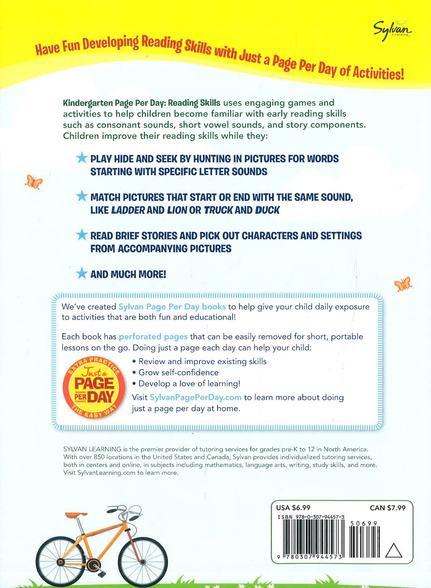 Sylvan Learning's Kindergarten Page Per Day: Reading Skills uses engaging games and activities to help children become familiar with early reading skills, including: