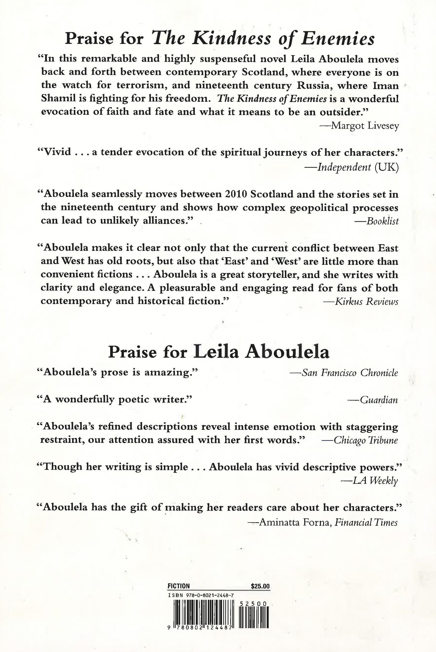 Told with Aboulela's inimitable elegance and narrated from the point of view of both Natasha and the historical characters she is researching, The Kindness of Enemies is both an engrossing story of a provocative period in history and an important examination of what it is to be a Muslim in a post 9/11 world.
