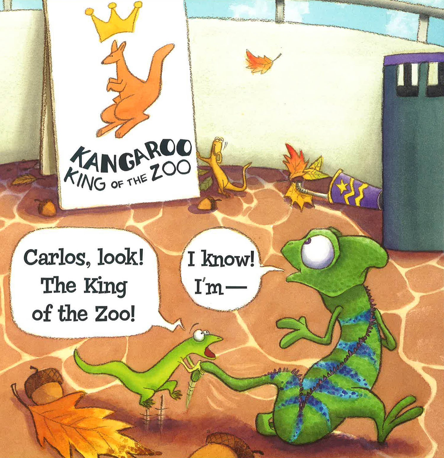 They say the lion is king of the jungle, but who's the king of the zoo? Meet Carlos the Chameleon, the true king of the zoo...or so he thought! When his friends point out that he's not the zoo's only king, Carlos must defend his kingdom! The kangaroo makes Carlos hopping mad. The monkey has Carlos scratching his head in disbelief. The elephant, too? Who knew? Will Carlos regain his rightful place on the throne or is he just being a royal pain?