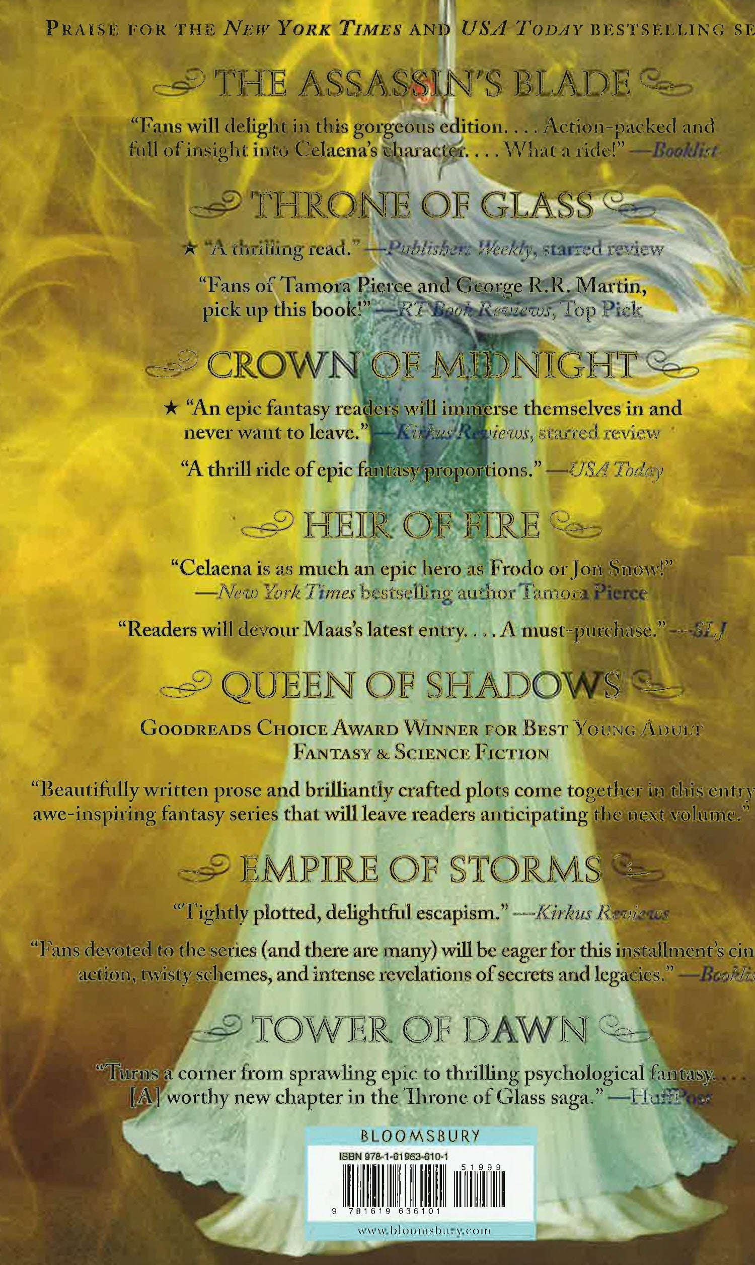 Years in the making, Sarah J. Maas's #1 New York Times bestselling Throne of Glass series draws to an epic, unforgettable conclusion. Aelin Galathynius's journey from slave to king's assassin to the queen of a once-great kingdom reaches its heart-rending finale as war erupts across her world. . .