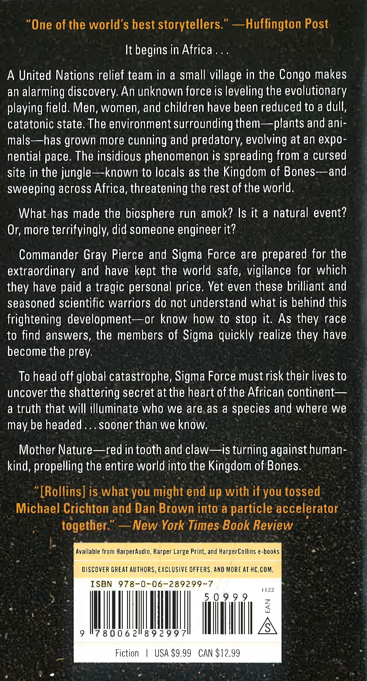 To head off global catastrophe, Sigma Force must risk their lives to uncover the shattering secret at the heart of the African continent—a truth that will illuminate who we are as a species and where we may be headed . . . sooner than we know.
