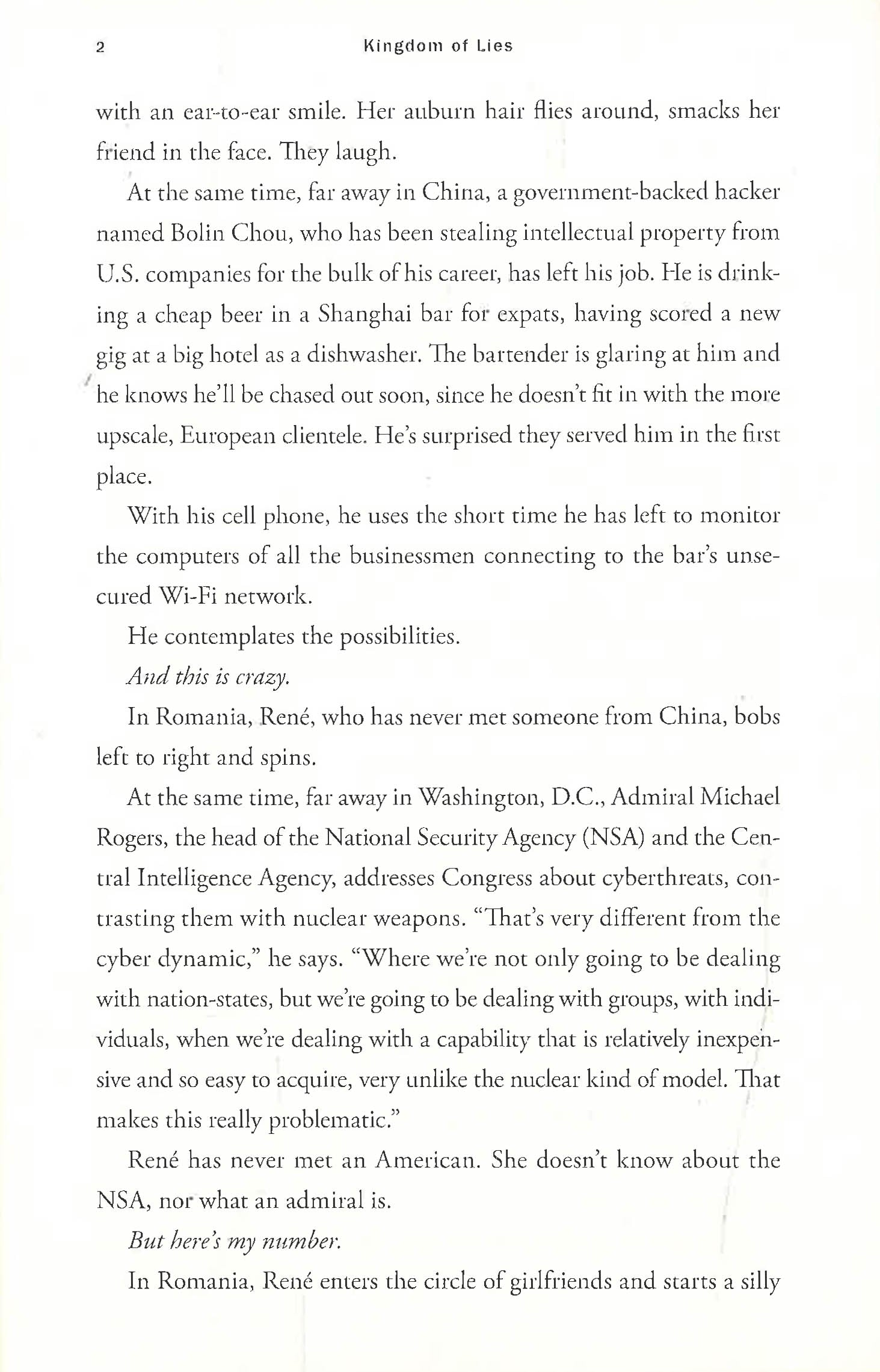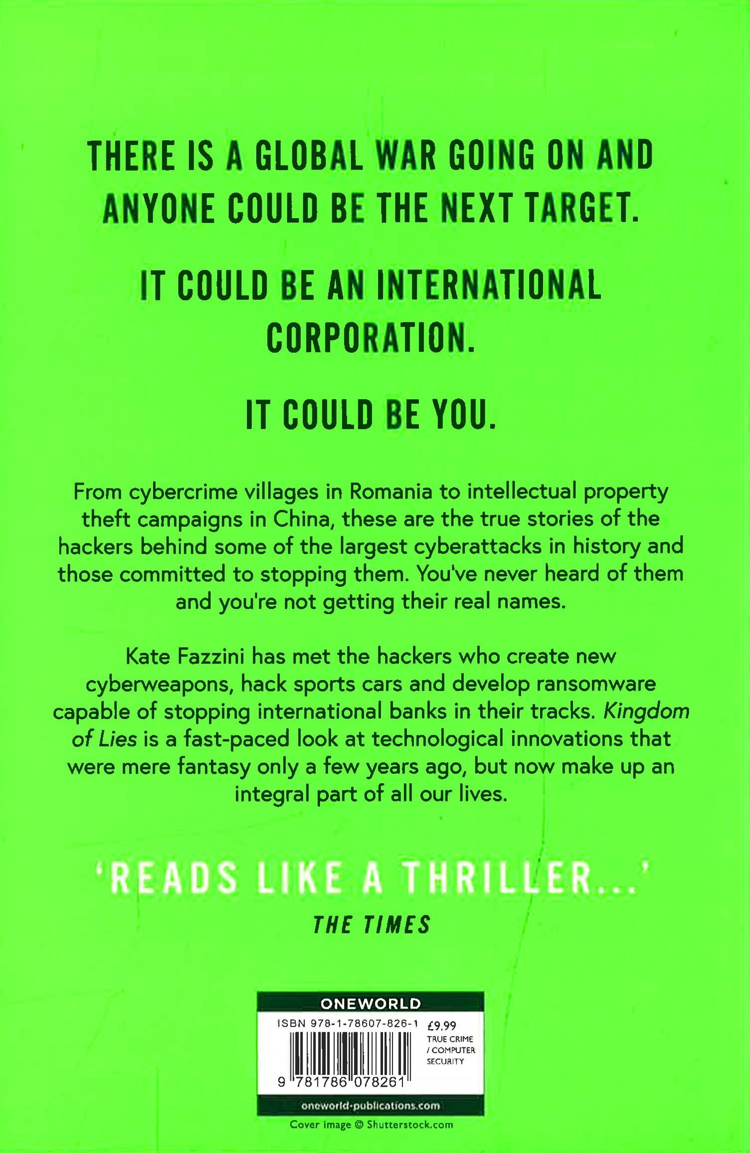 Would you say your phone is safe, or your computer? What about your car? Or your bank? There is a global war going on and the next target could be anyone - an international corporation or a randomly selected individual. From cybercrime villages in Romania to intellectual property theft campaigns in China, these are the true stories of the hackers behind some of the largest cyberattacks in history and those committed to stopping them. You've never heard of them and you're not getting their real names. Kate Fazzini has met the hackers who create new cyberweapons, hack sports cars and develop ransomware capable of stopping international banks in their tracks. Kingdom of Lies is a fast-paced look at technological innovations that were mere fantasy only a few years ago, but now make up an integral part of all our lives.