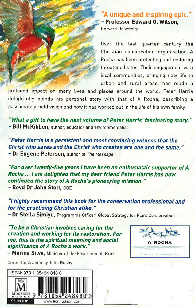 Hope is often the missing element in the environmental story. Over the last quarter century the Christian conservation organisation A Rocha has been protecting and restoring threatened sites. Their engagement with local communities, bringing new life to urban and rural areas, has made a profound impact in many lives and places. Peter Harris delightfully blends his personal story with that of A Rocha, describing a passionately-held vision and how it has worked out in the life of his own family.