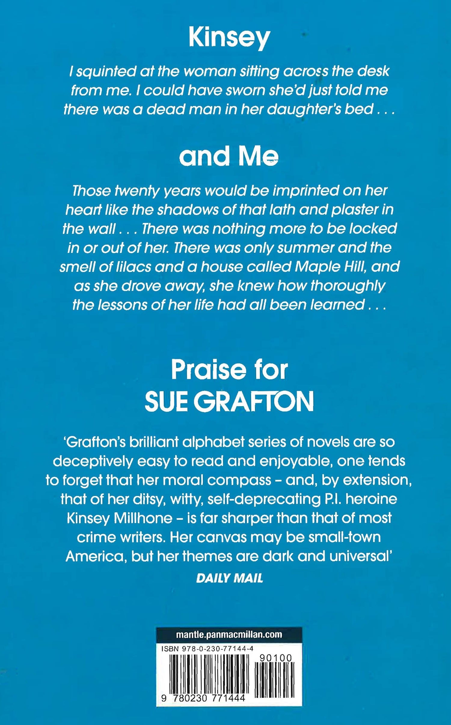 n 1982, Sue Grafton introduced us to Kinsey Millhone. Over thirty years later, Kinsey is an established international icon and Sue, a number-one bestselling author. To mark this anniversary, Sue has given us stories that reveal Kinsey's origins and Sue's past. Sue Grafton presents 'Kinsey and Me', her first compendium of short stories.